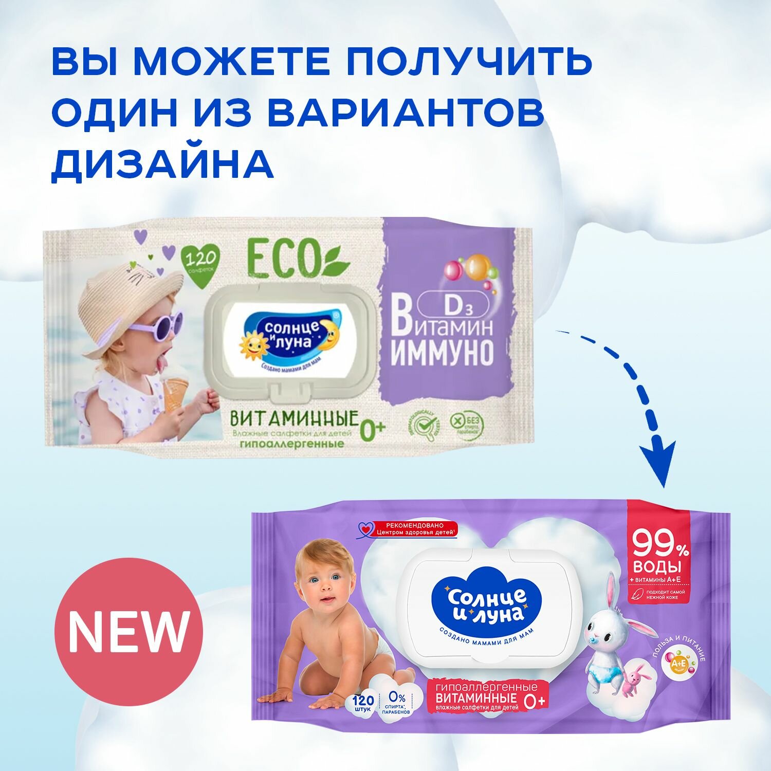 Влажные салфетки детские витаминные 360 шт (120 шт х 3), солнце И луна