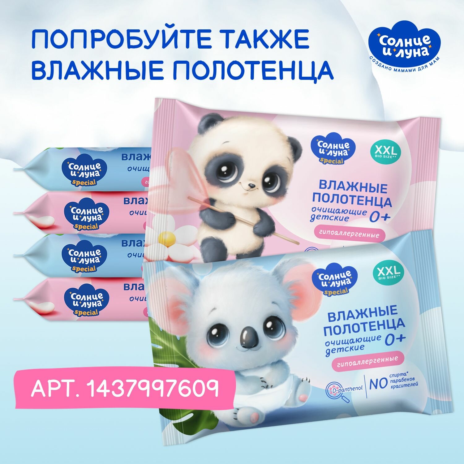 Влажные полотенца детские очищающие 504 шт (42 шт х 12), солнце И луна SPECIAL