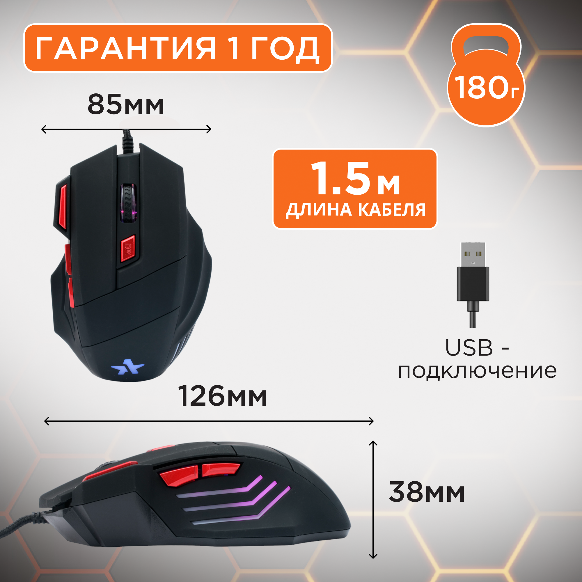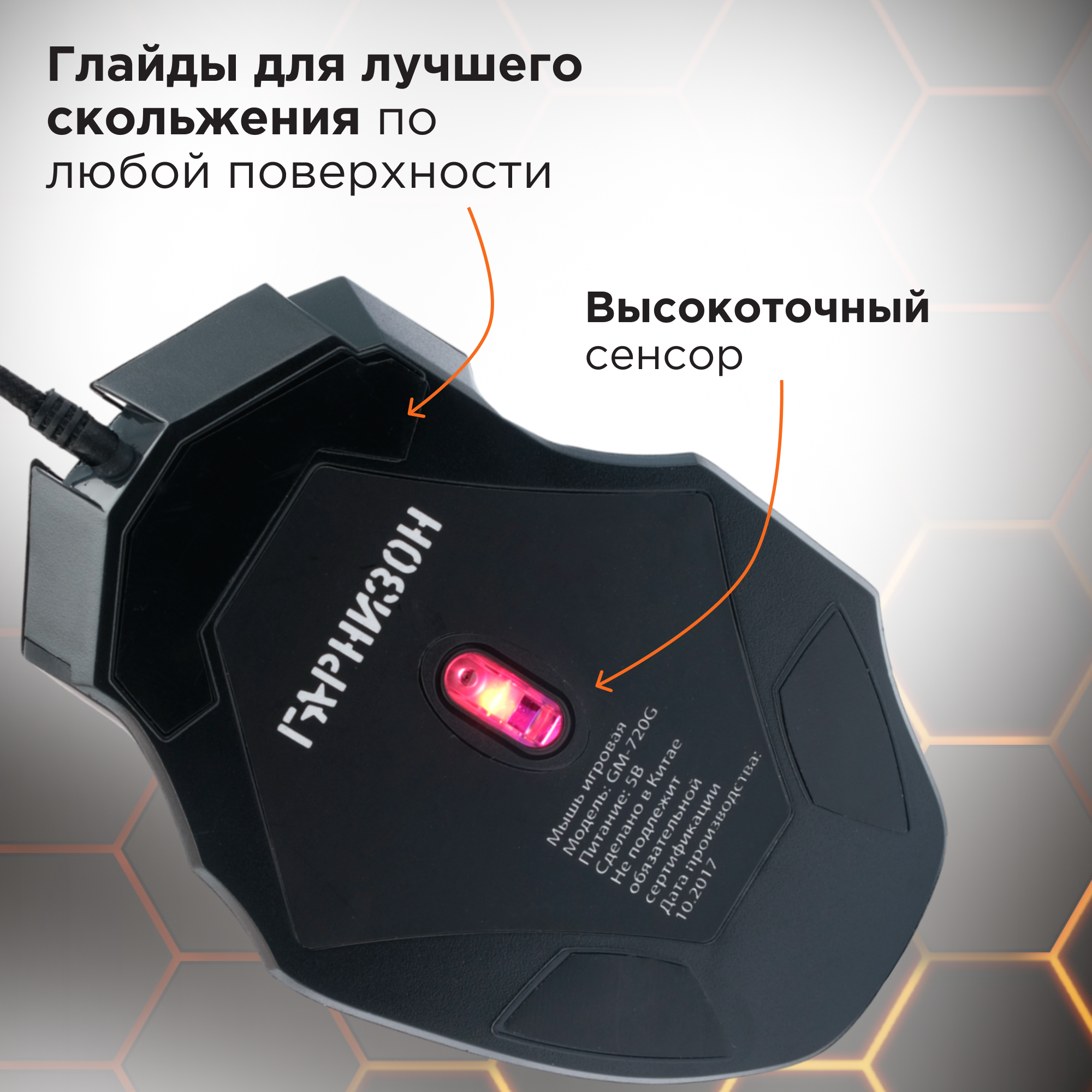 GM-720G Мышь игровая Гарнизон GM-720G, черная