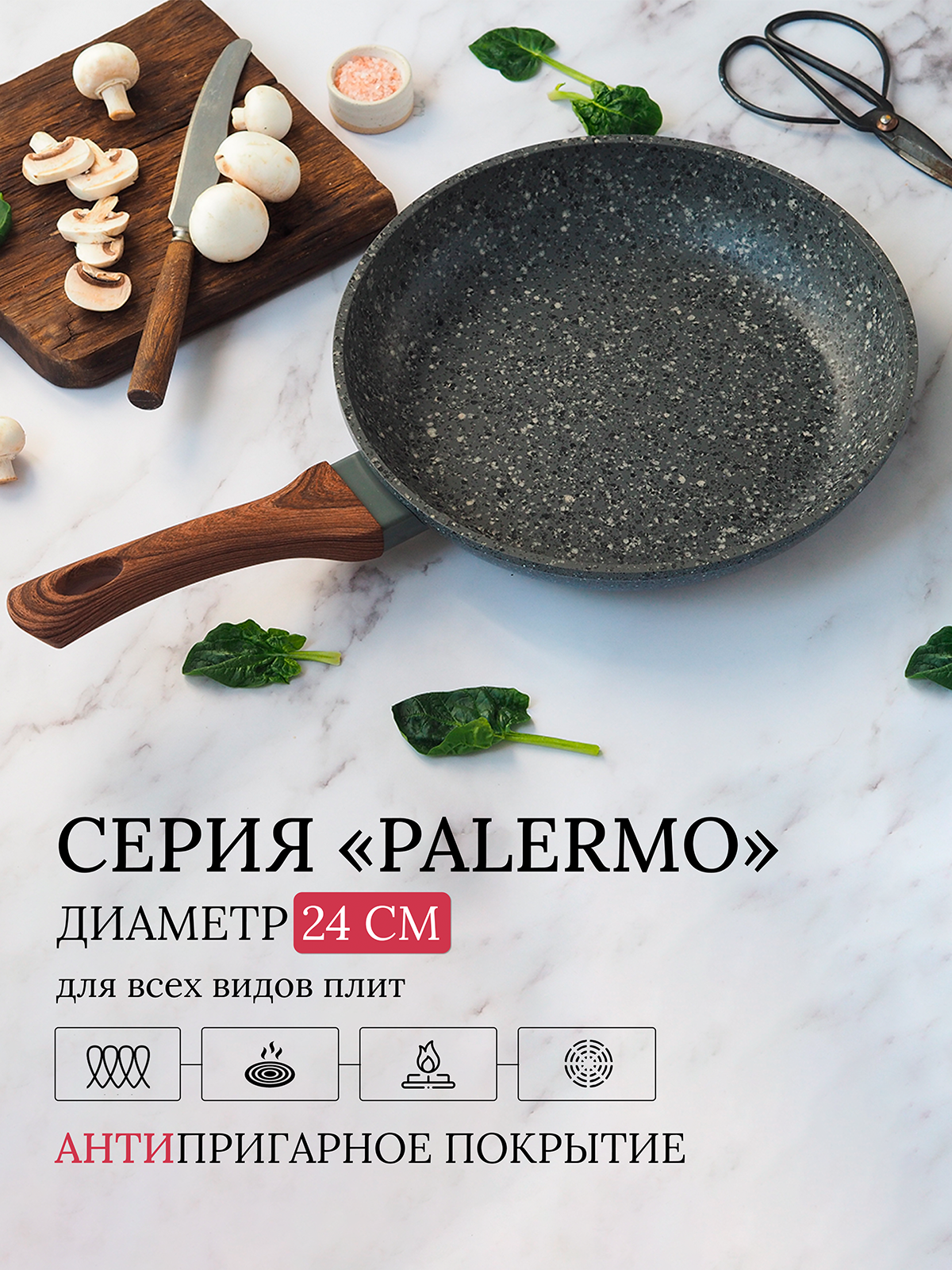 Сковорода 24 см LARA LR01-55-24 GRANIT PALERMO - c антипригарным покрытием для для всех видов плит