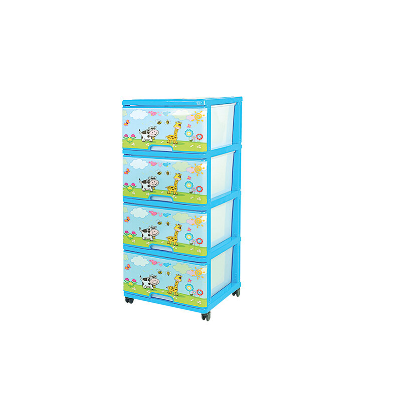 Купить Комод пластиковый с ящиками Dunya,со съёмными колёсиками, На лужайке/голубой