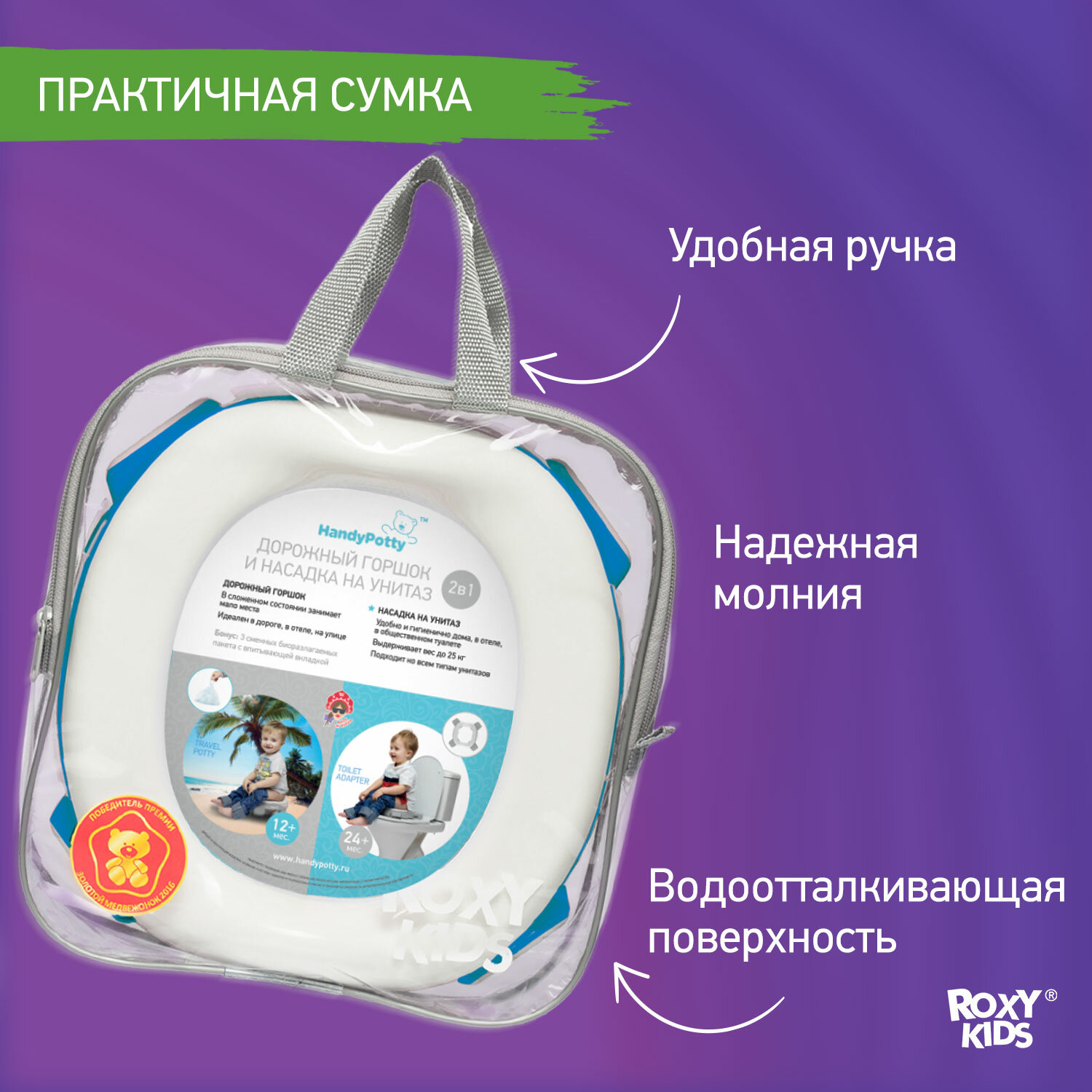 СохранитьГоршок детский складной дорожный 2в1 для малышей HandyPotty ROXY-KIDS интересное: