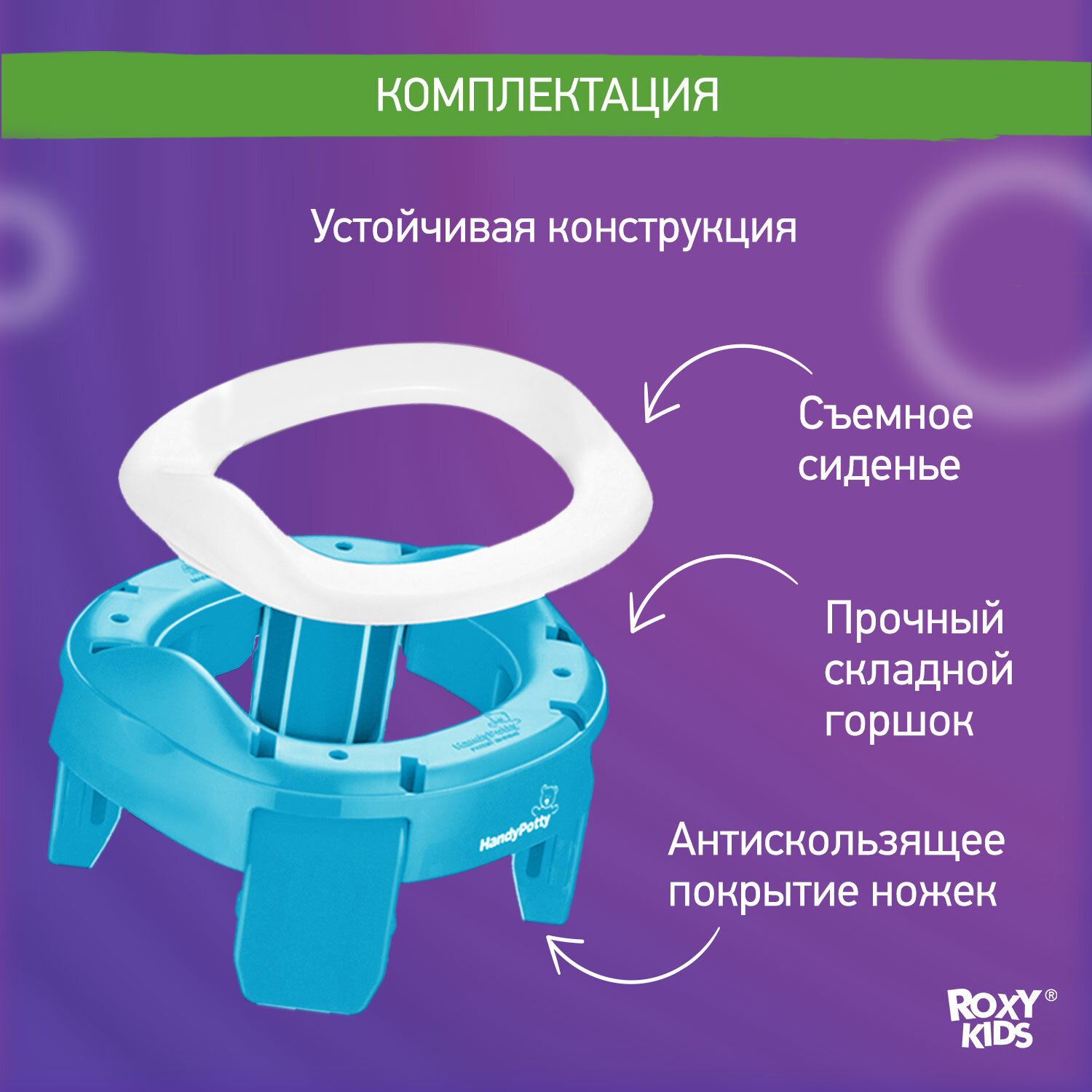 Купить Горшок детский складной дорожный 2в1 для малышей HandyPotty ROXY-KIDS