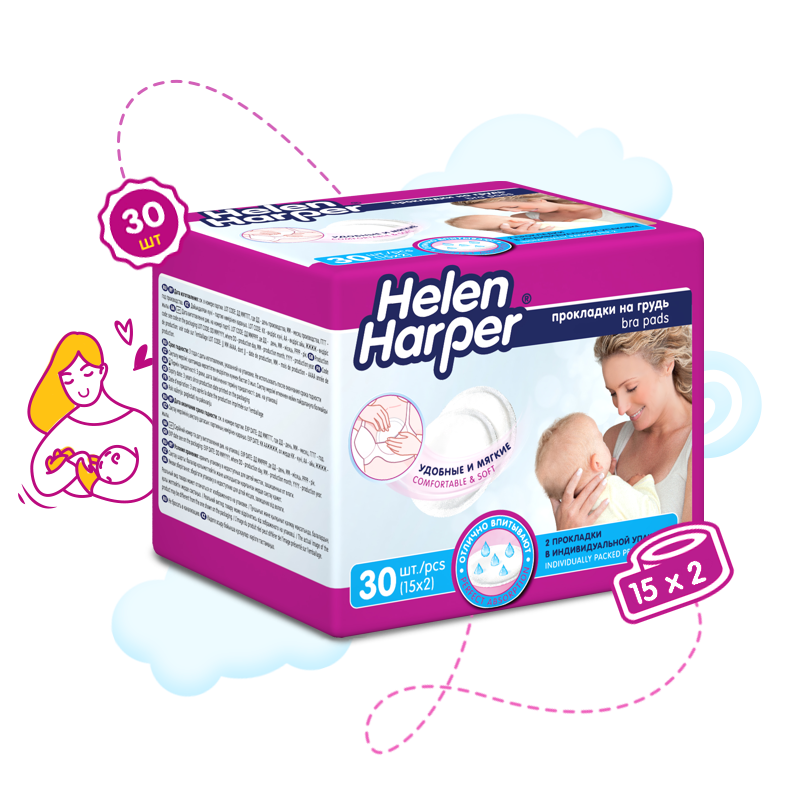 Helen Harper Прокладки на грудь для кормящих матерей, 30 шт.