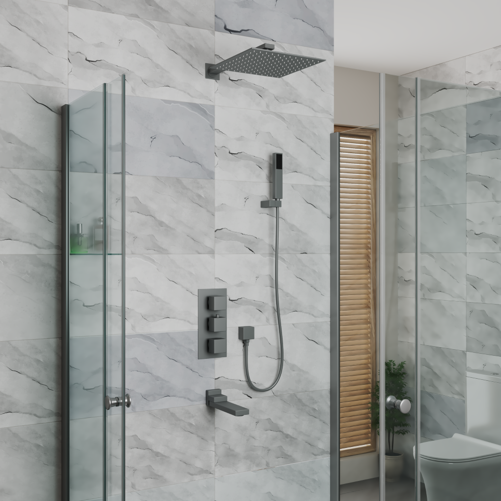 Купить Душевая система для ванны и душа DK встраиваемая термостатическая с изливом серый графит Bayern.Liszt (DA2515606A04)