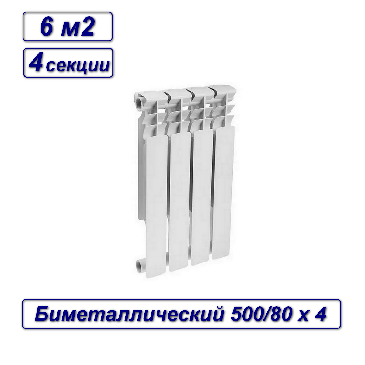 Радиатор биметаллический оазис 6 секций, 500/80/6