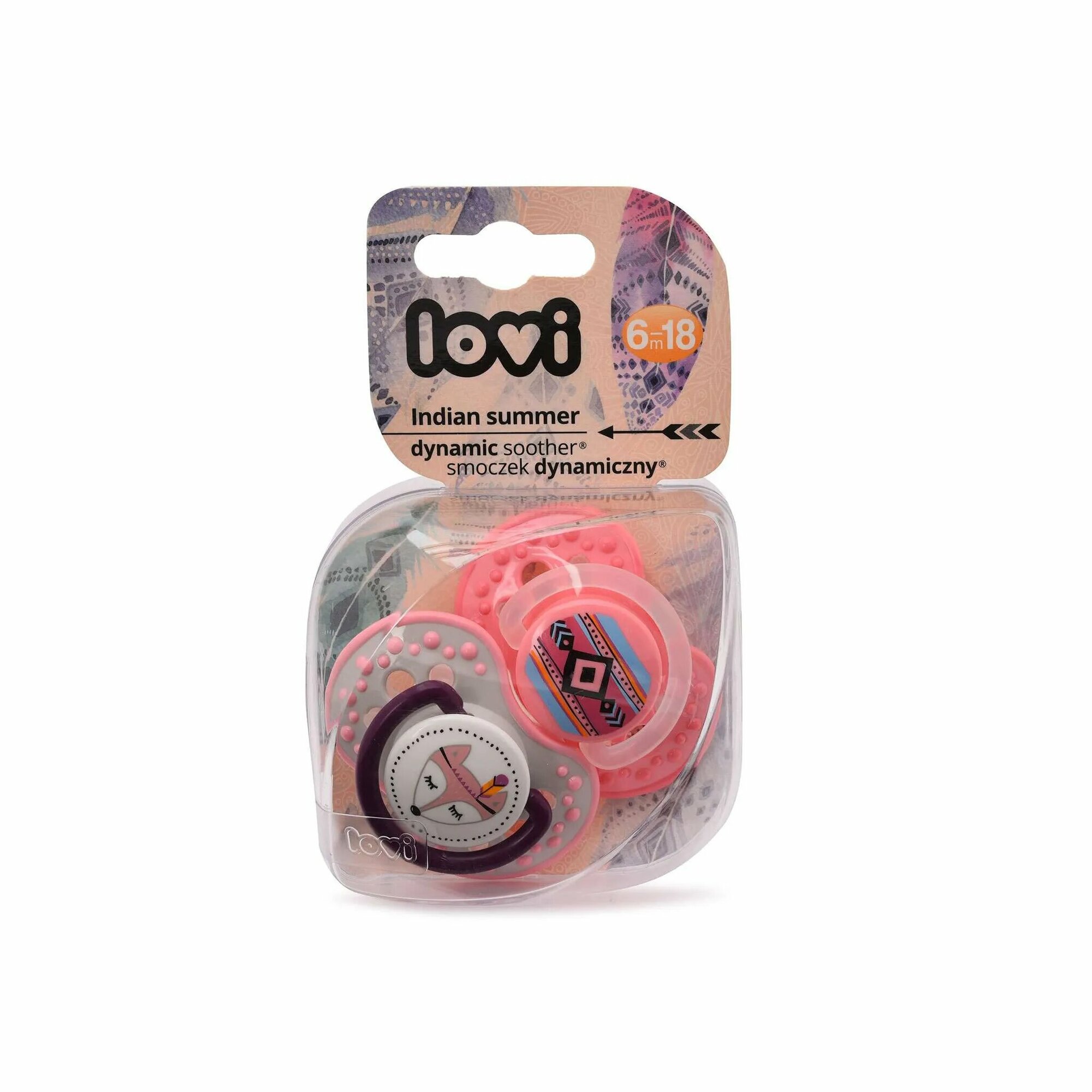 Пустышка Lovi Indian Summer динамическая силиконовая 6-18+ мес., 2 шт., розовый