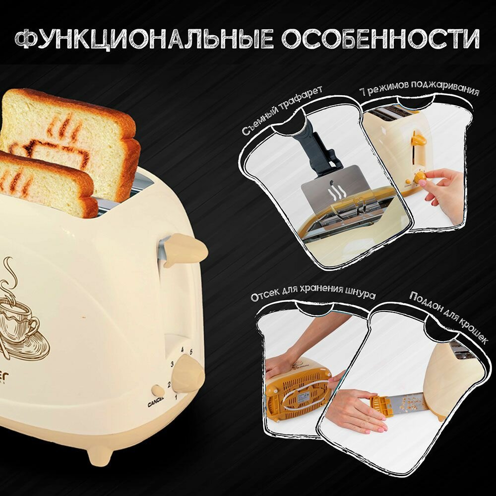 Тостер для хлеба Endever ST-108, съемный трафарет для рисунка / 7 режимов / функции отмены, центрирования
