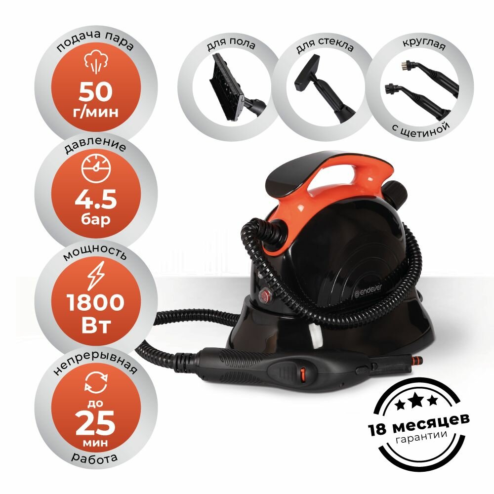 Универсальный пароочиститель Endever Odyssey Q-804, чёрно-оранжевый (80363)