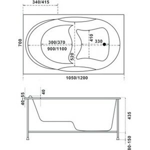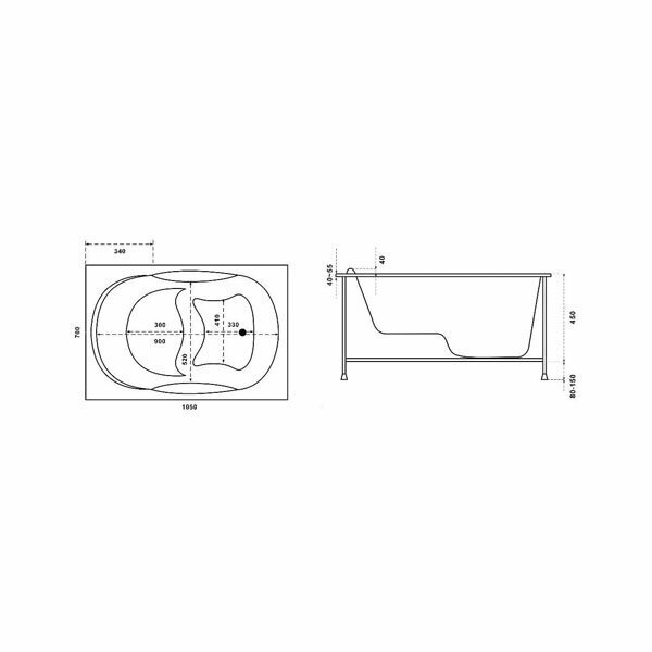 Акриловая ванна Bas Рио 105x70 на каркасе