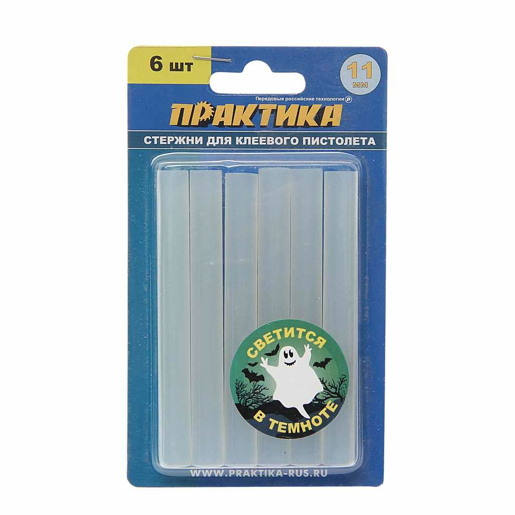 Купить Клей для клеевого пистолета ПРАКТИКА белый, светящийся в темноте, 11 х 100 мм, 6 шт / блист (790-243)