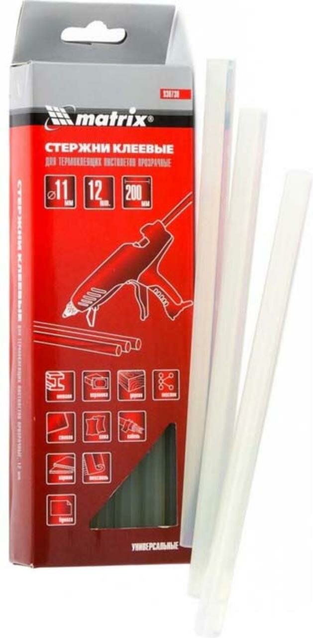 MATRIX 930730 Стержни клеевые, прозрачные, 11x200 мм ., 12 шт. в упаковке MATRIX 930730