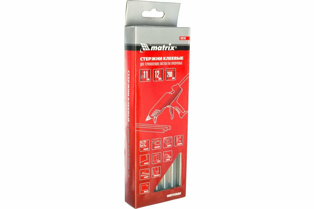 Стержни клеевые, прозрачные, 11 x 200 мм ., 12 шт. в упаковке matrix 930730