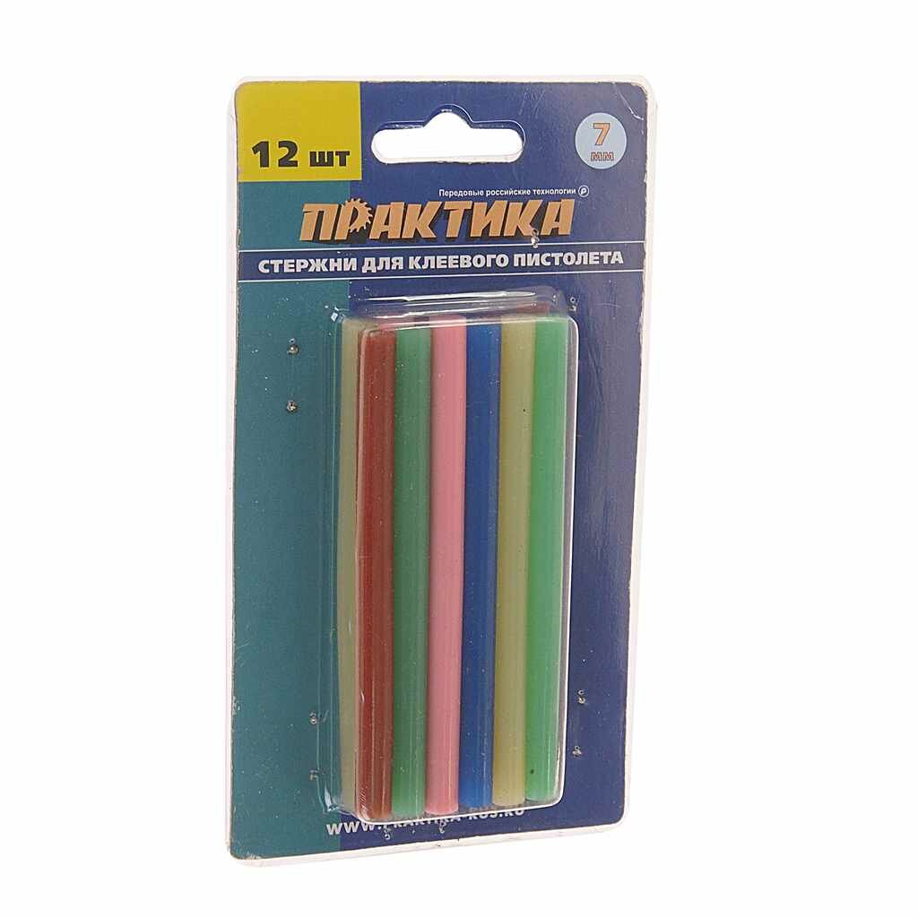 Клей ПРАКТИКА для термопистолета 7х100мм 12 шт. цветной