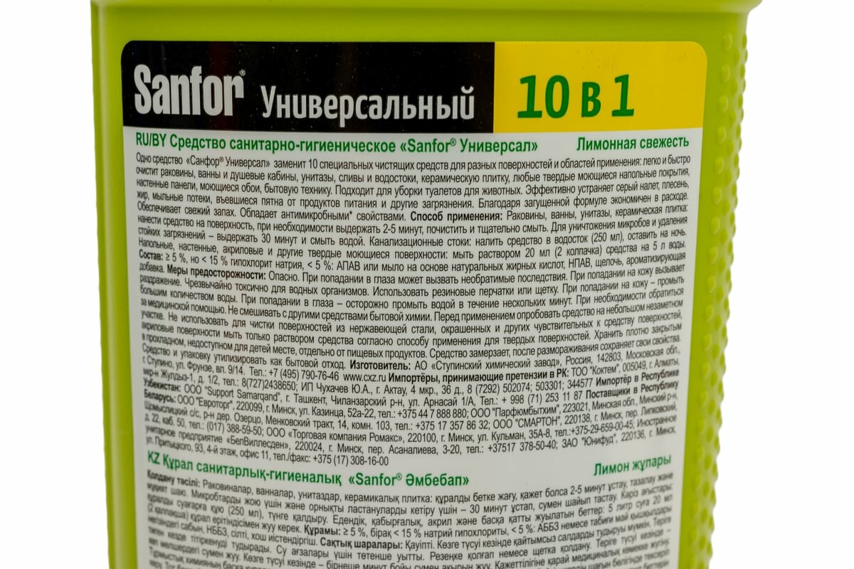 Чистящее средство Sanfor UNIVERSAL 10в1 Лимонная свежесть, универсальное, 1 л