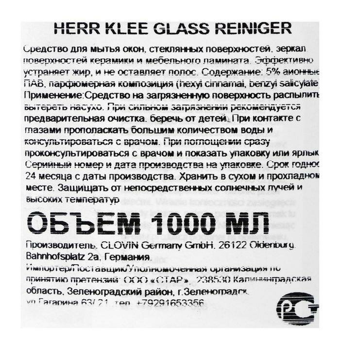 Herr Klee C.G. Nano Silver Line Glas Reiniger Средство для мытья стекол 1000 мл