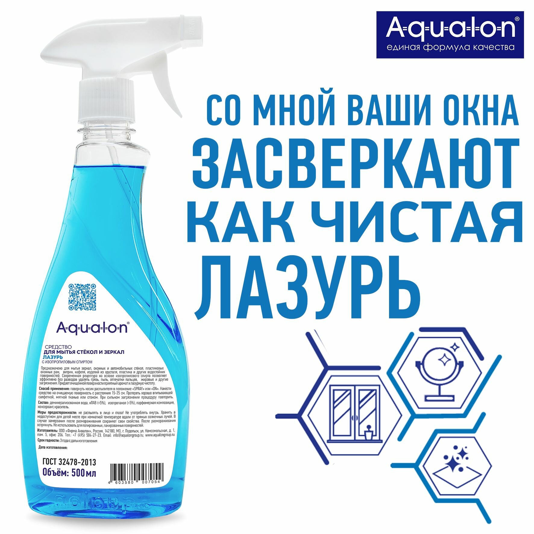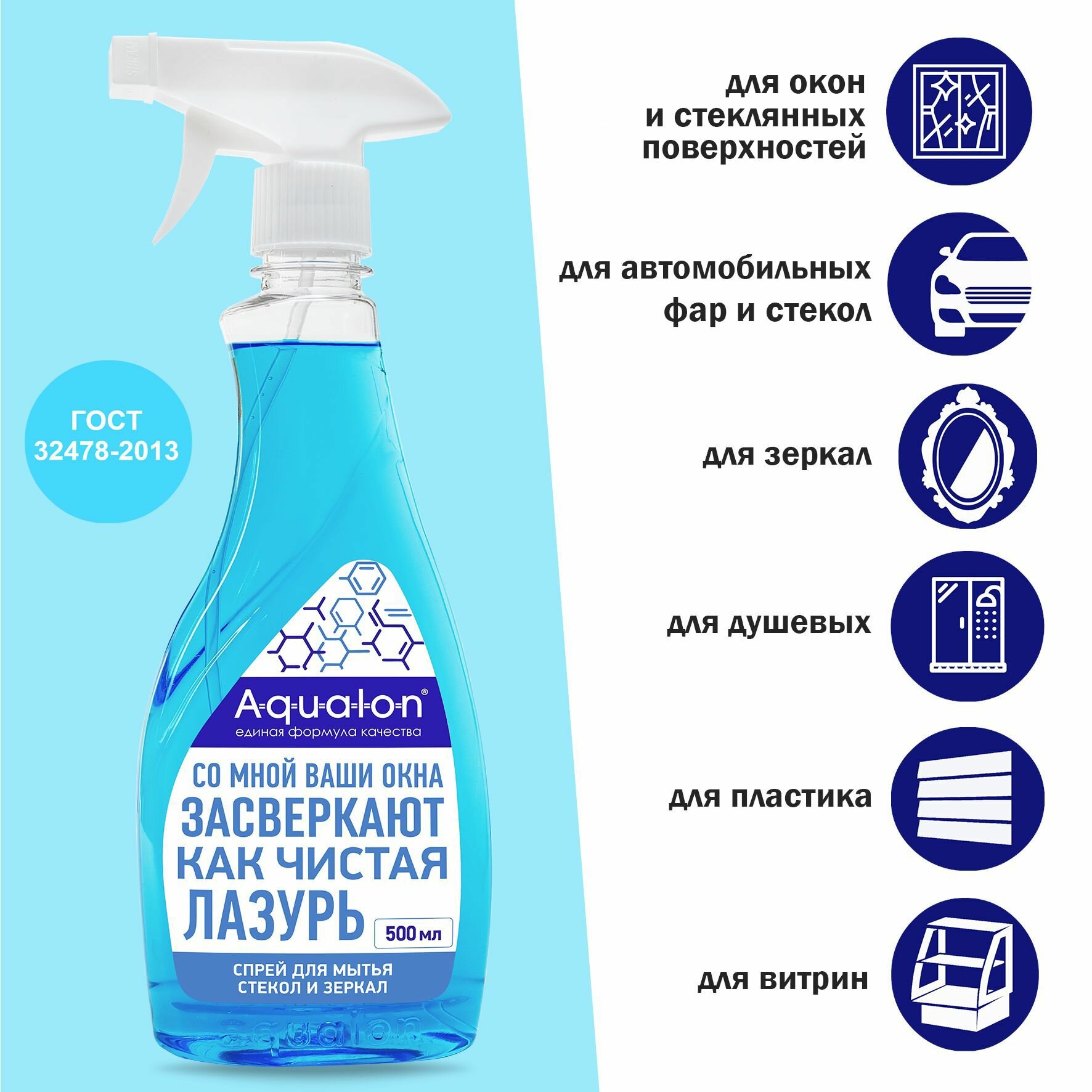 AQUALON Средство для мытья стекол и зеркал, 500 мл, Лазурь интересное: