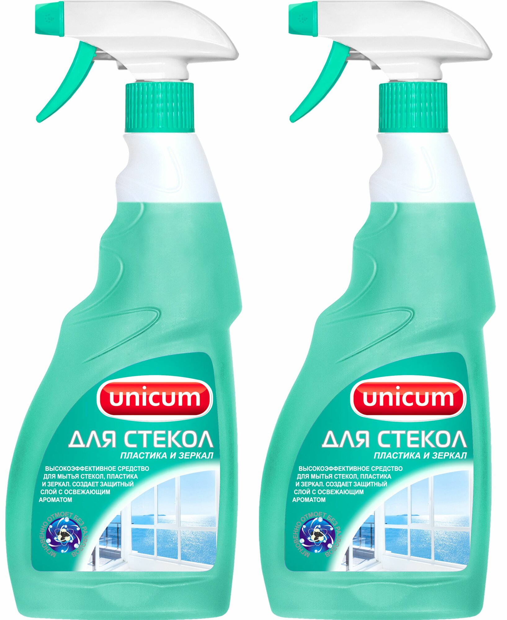 UNICUM Средство для мытья стекол, пластика и зеркал, 500 мл, 2 шт.