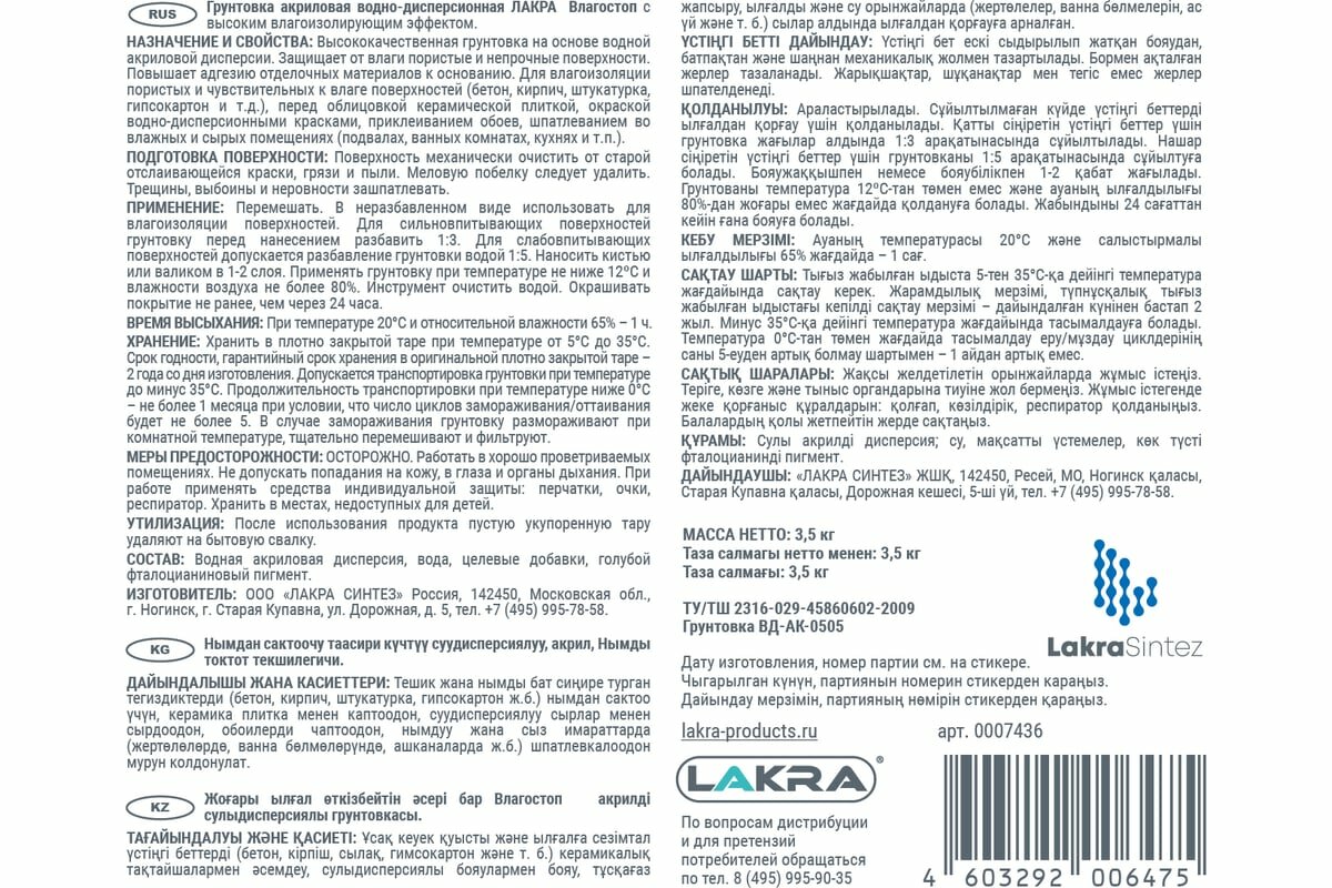 Грунт акриловый Влагостоп 3,5кг Лакра лакра синтез 4603292006475