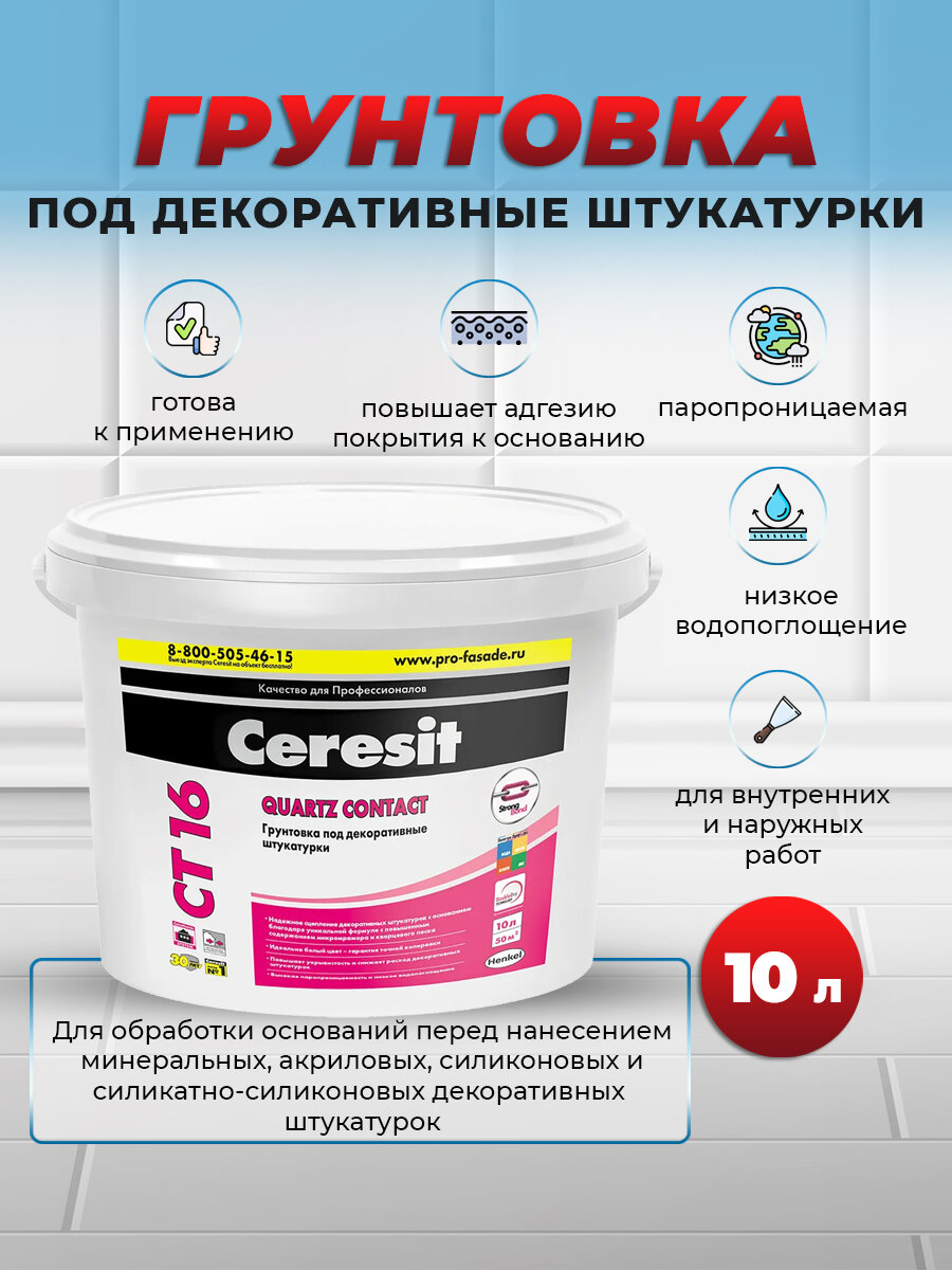 Церезит СТ-16 Кварц Контакт грунтовка под декоративные штукатурки (10л) / CERESIT CT16 Quartz Contact грунтовка под декоративные штукатурки (10л)