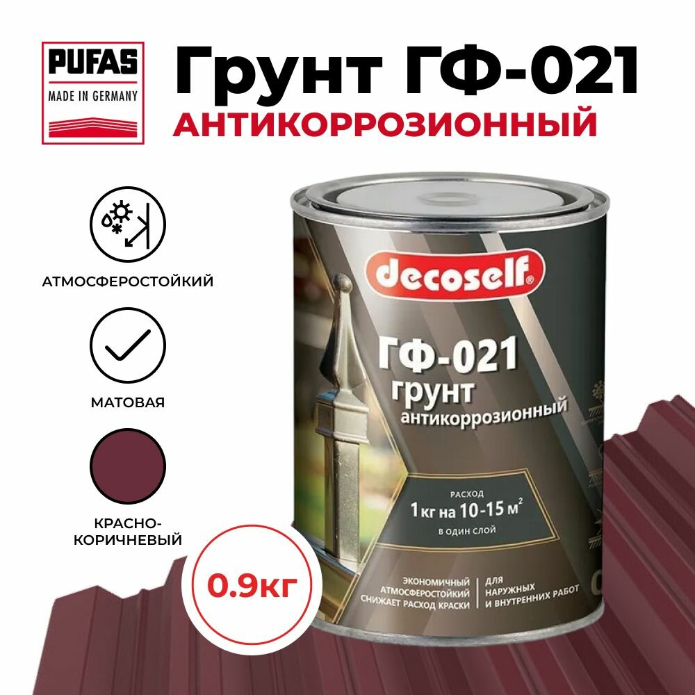 Купить Декоселф грунтовка ГФ-021 красно-коричневая (0,9кг) / DECOSELF грунт антикоррозийный ГФ-021 красно-коричневый (0,9кг)