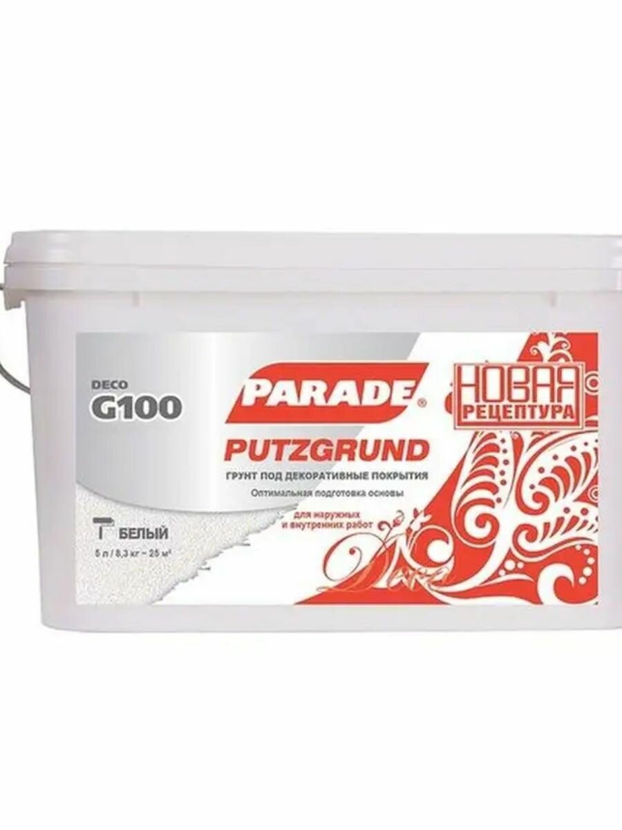 Грунт Адгезионный Parade G100 Putzgrund 5.0л Белый с Кварцевым Наполнителем под Декоративные Штукатурки / Парад Путзгрунд 100.