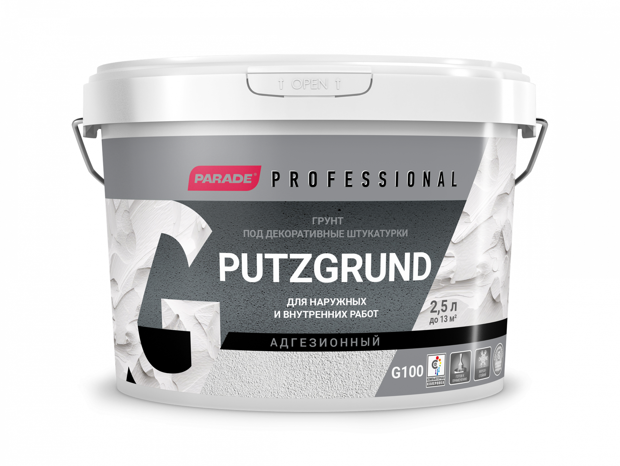 Грунт Адгезионный Parade G100 Putzgrund 5.0л Белый с Кварцевым Наполнителем под Декоративные Штукатурки / Парад Путзгрунд 100.