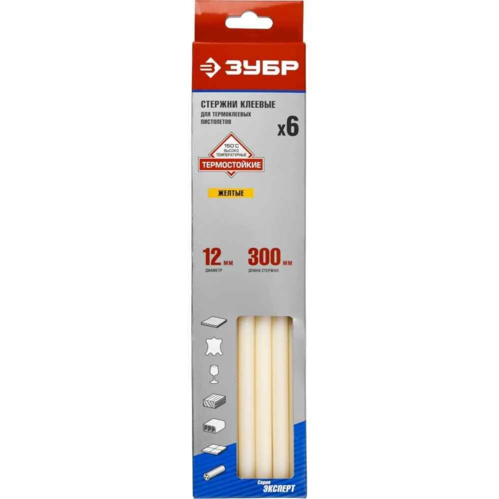 Стержни Зубр "эксперт" для клеевых пистолетов, желтые, универсальные, 6шт, 12х300 (06855-12-2) .