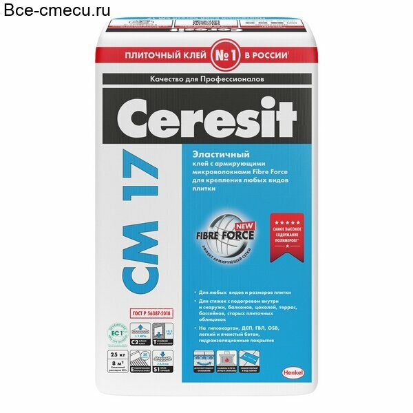 CERESIT CM 17 клей суперэластичный с микроволокнами для всех видов плиток (25кг)
