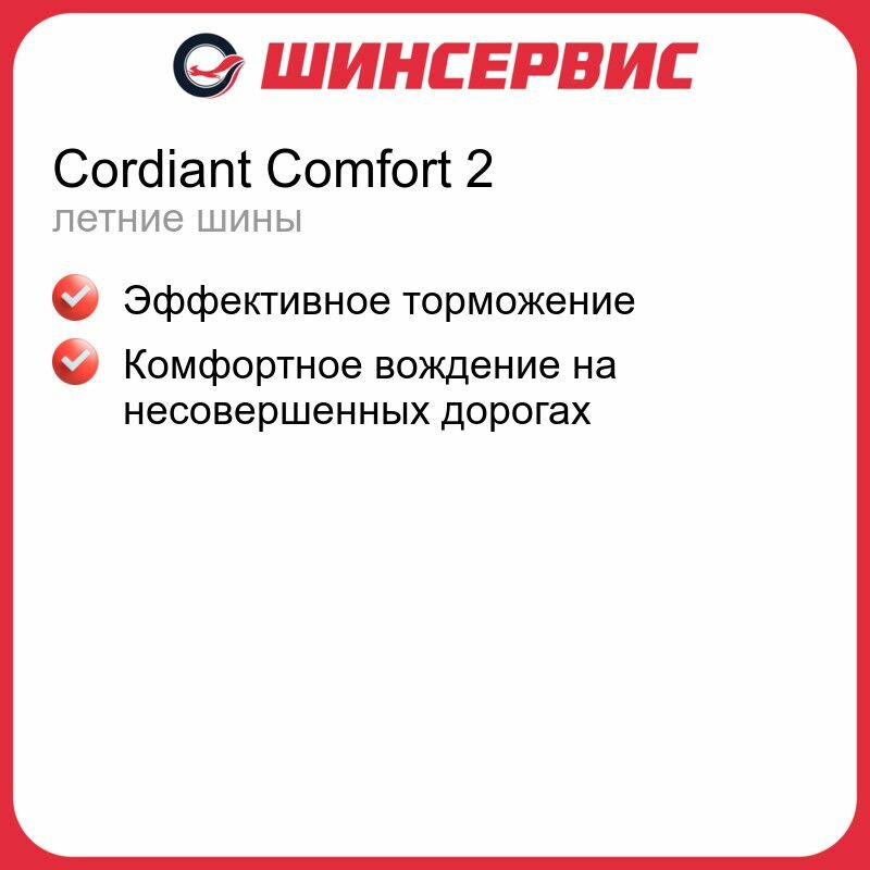 Шина автомобильная Cordiant Comfort 2 205/60/16 96H резина бескамерная