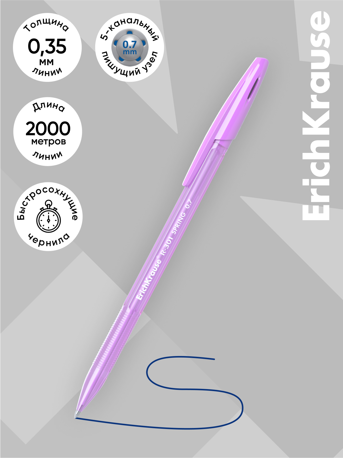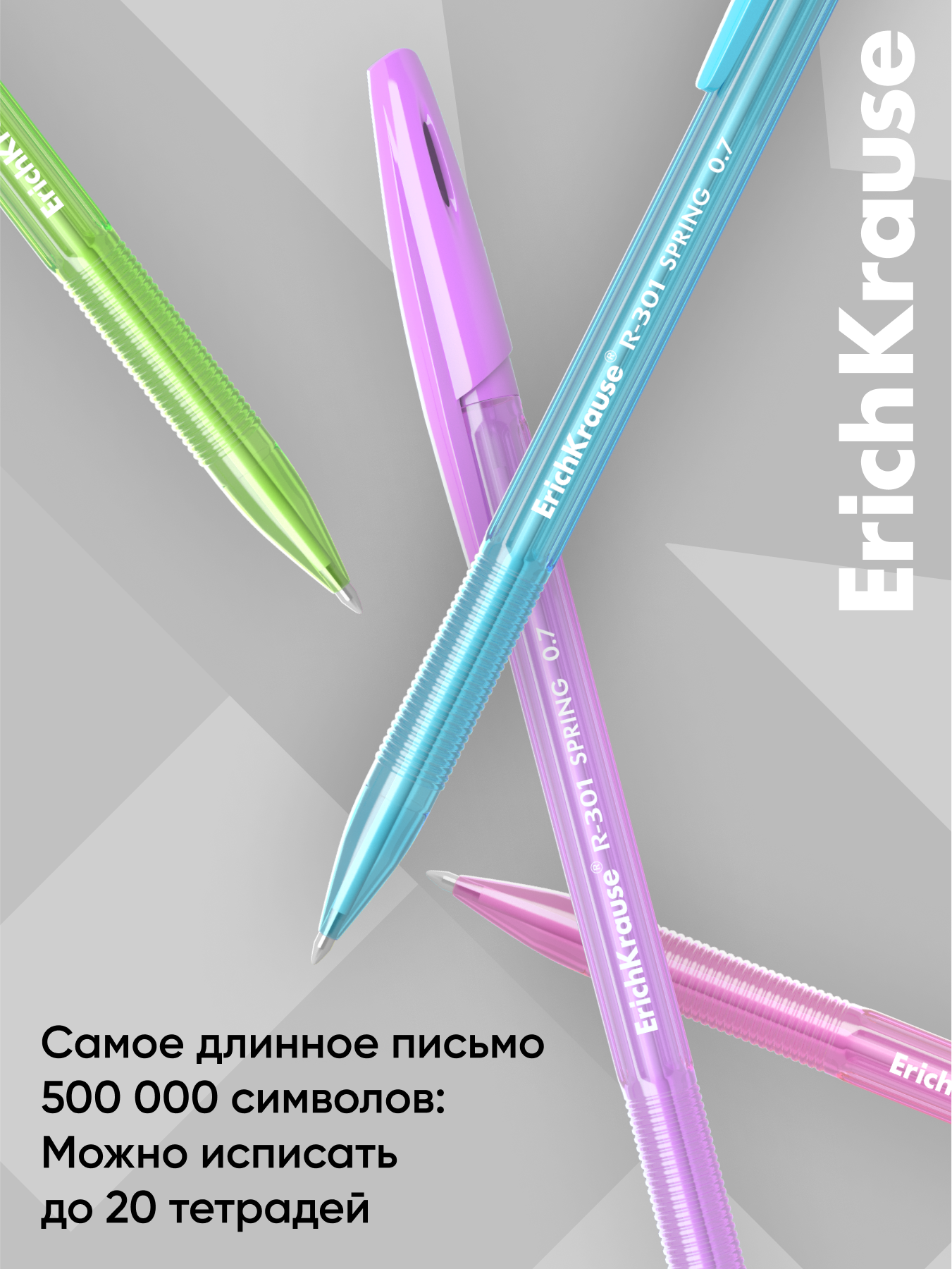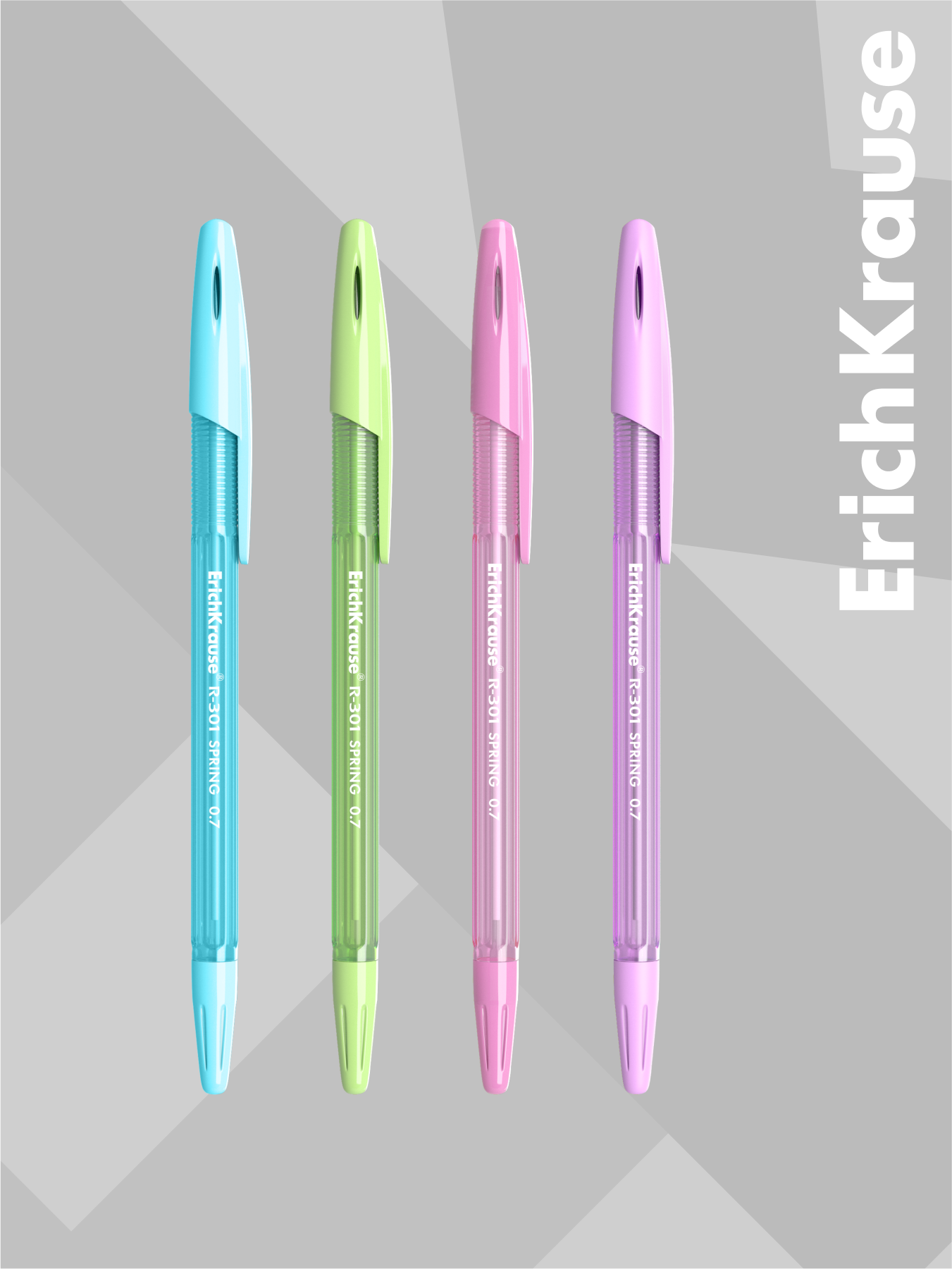 Купить Ручка шариковая ErichKrause® R-301 Spring Stick 0.7, цвет чернил синий (в пакете по 4 шт.)