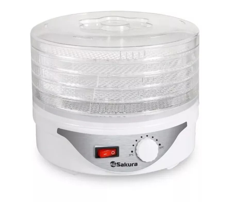 Сушилка для овощей и фруктов Sakura SA-7805, 250 Вт, 5 ярусов, белая