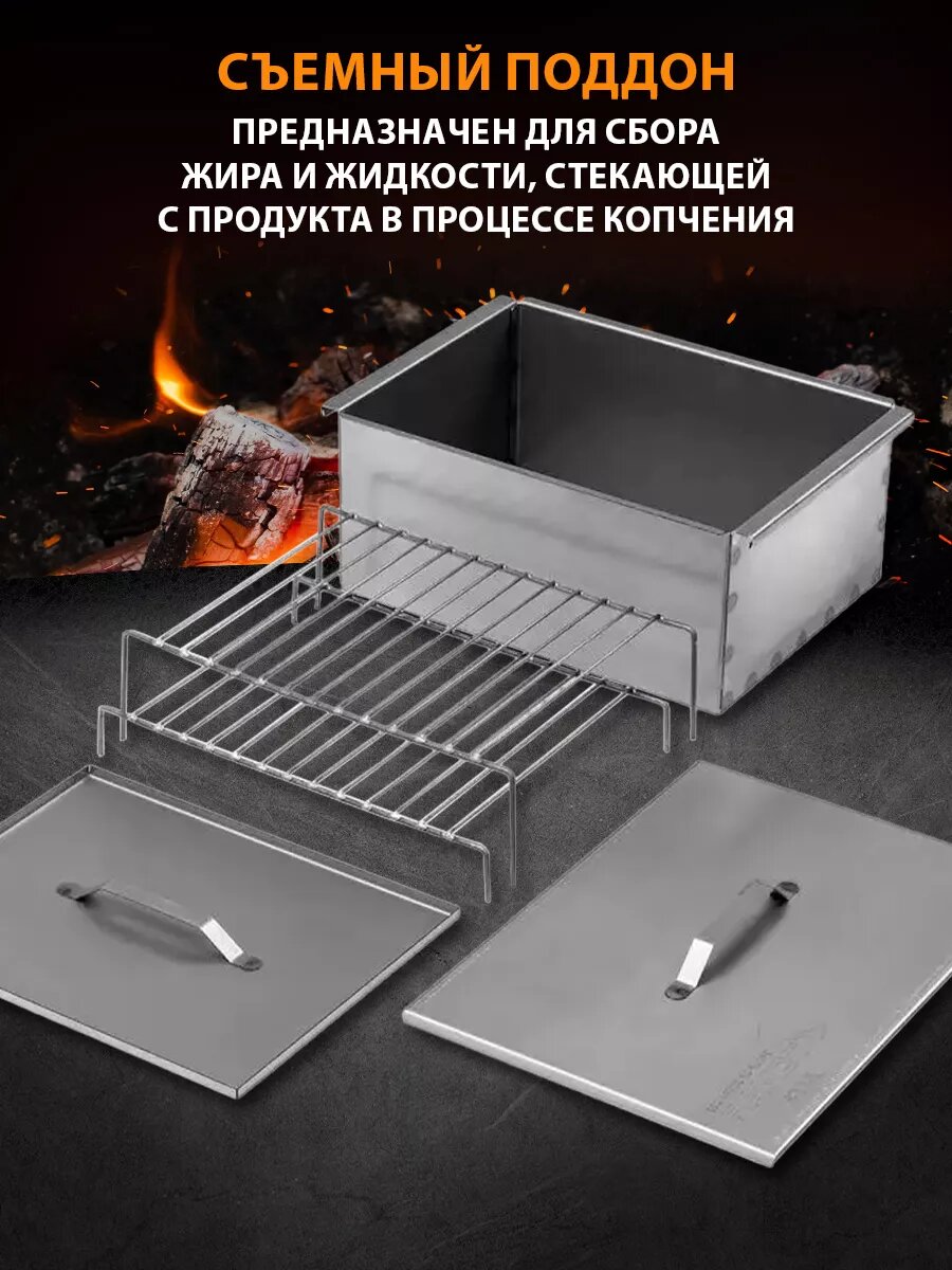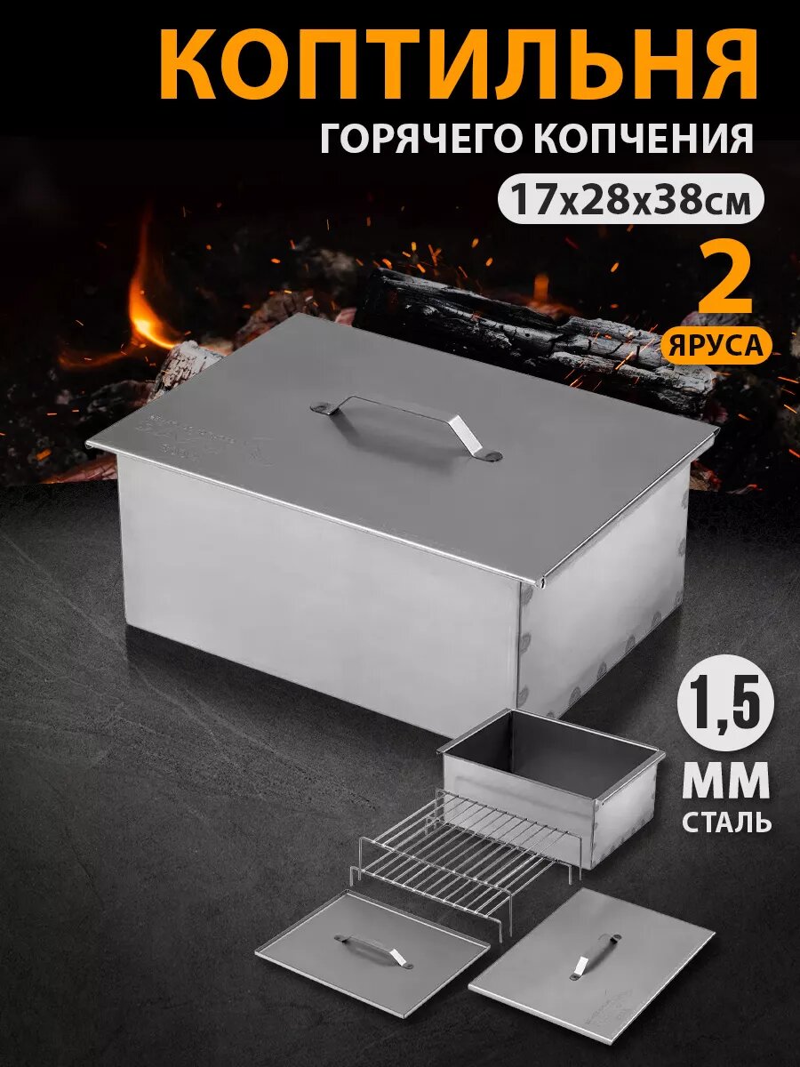 СохранитьКоптильня двухъярусная с поддоном для сбора жира 380х280х170 сталь 1,5 мм (К-003) интересное: