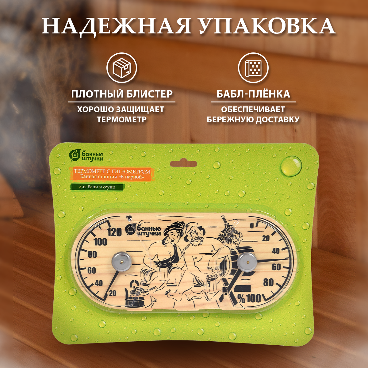 Термометр с гигрометром для бани и сауны Банная станция В парной 18048