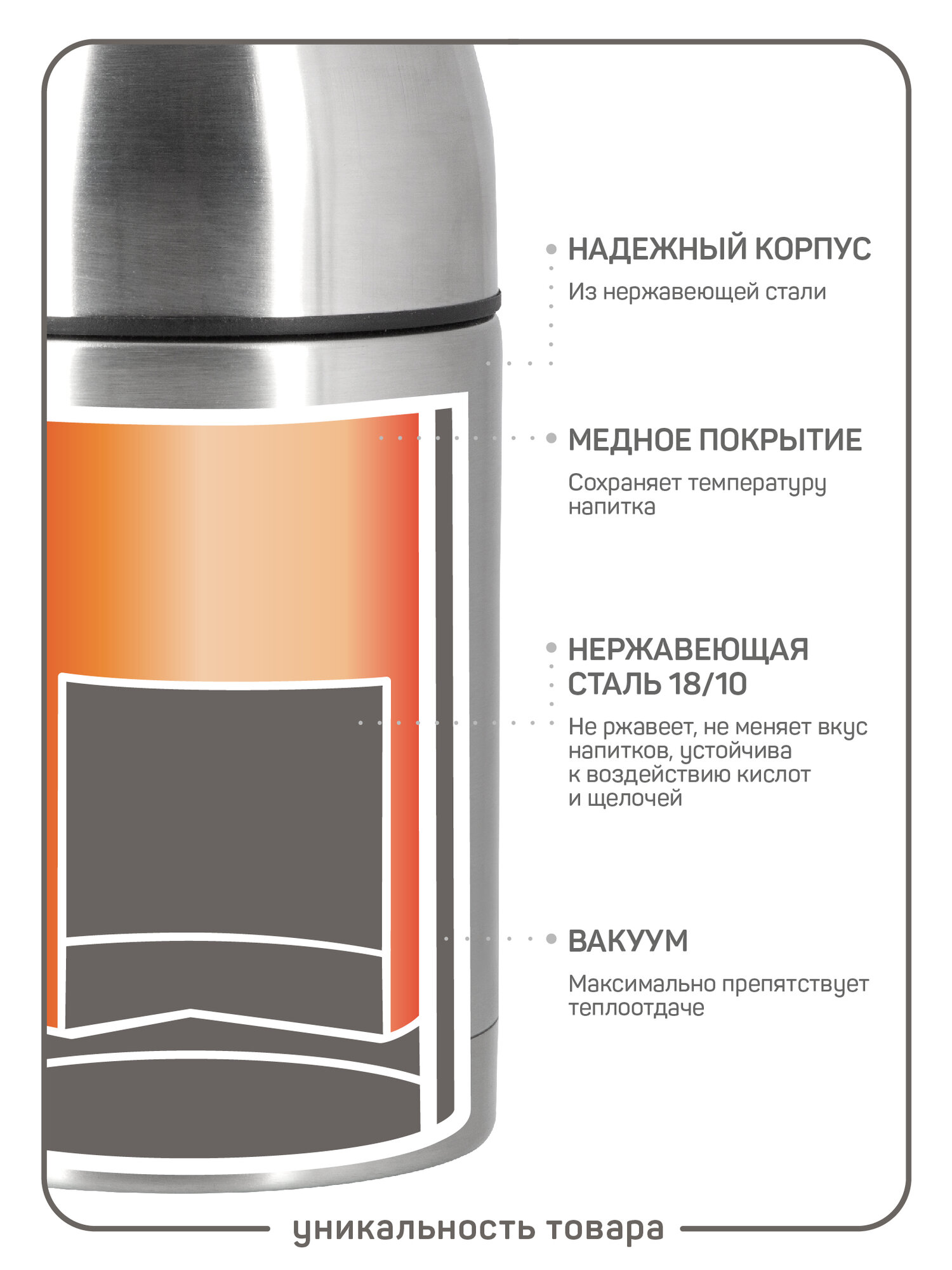Термос с широким горлом Tirol,650 мл /Термос универсальный /Термос для чая / Термос металлический