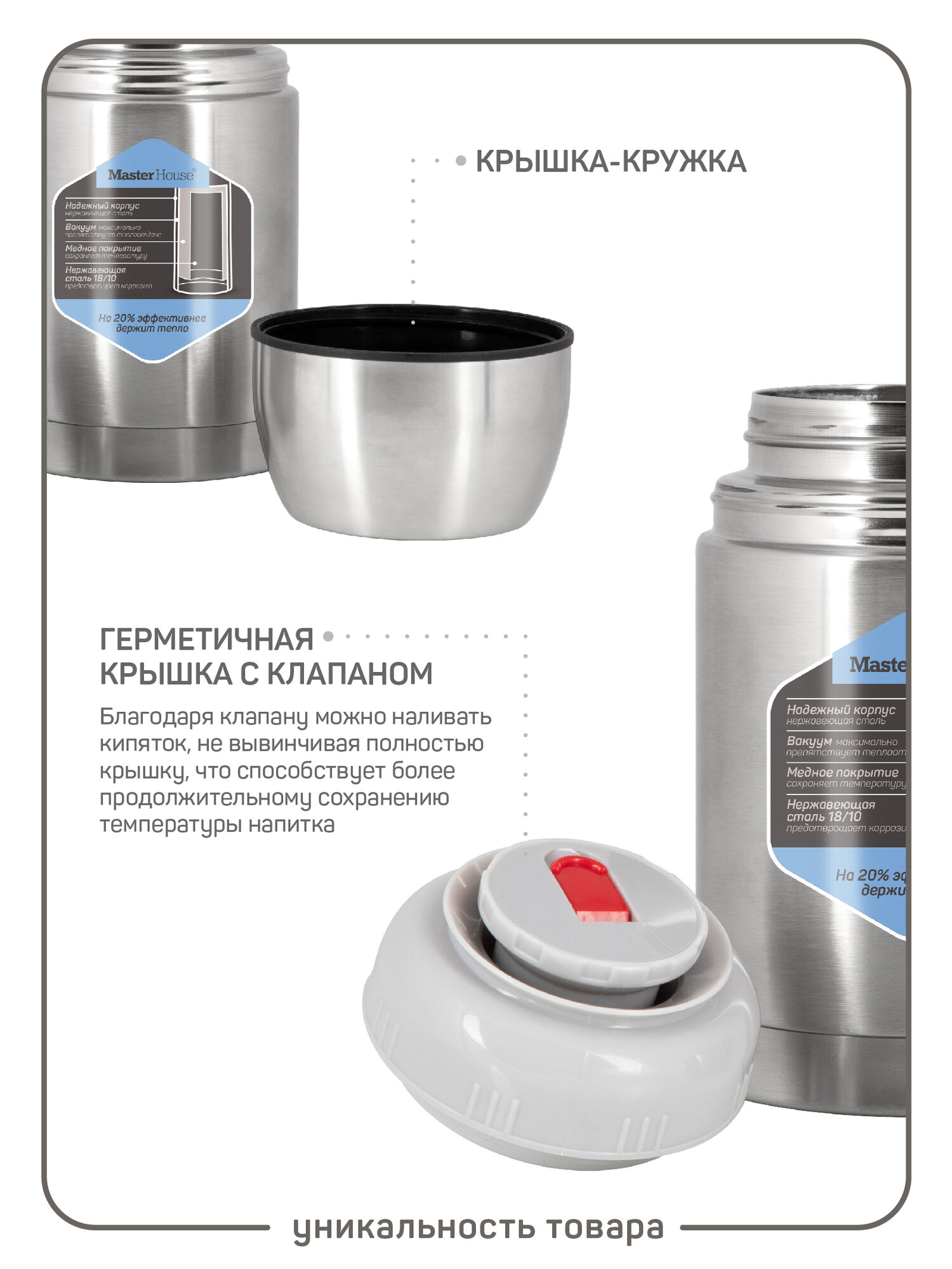 Термос Tirol-650 широкое горло, 0,65л, суповой, нерж сталь, арт.60065 Master House (арт. 552883)