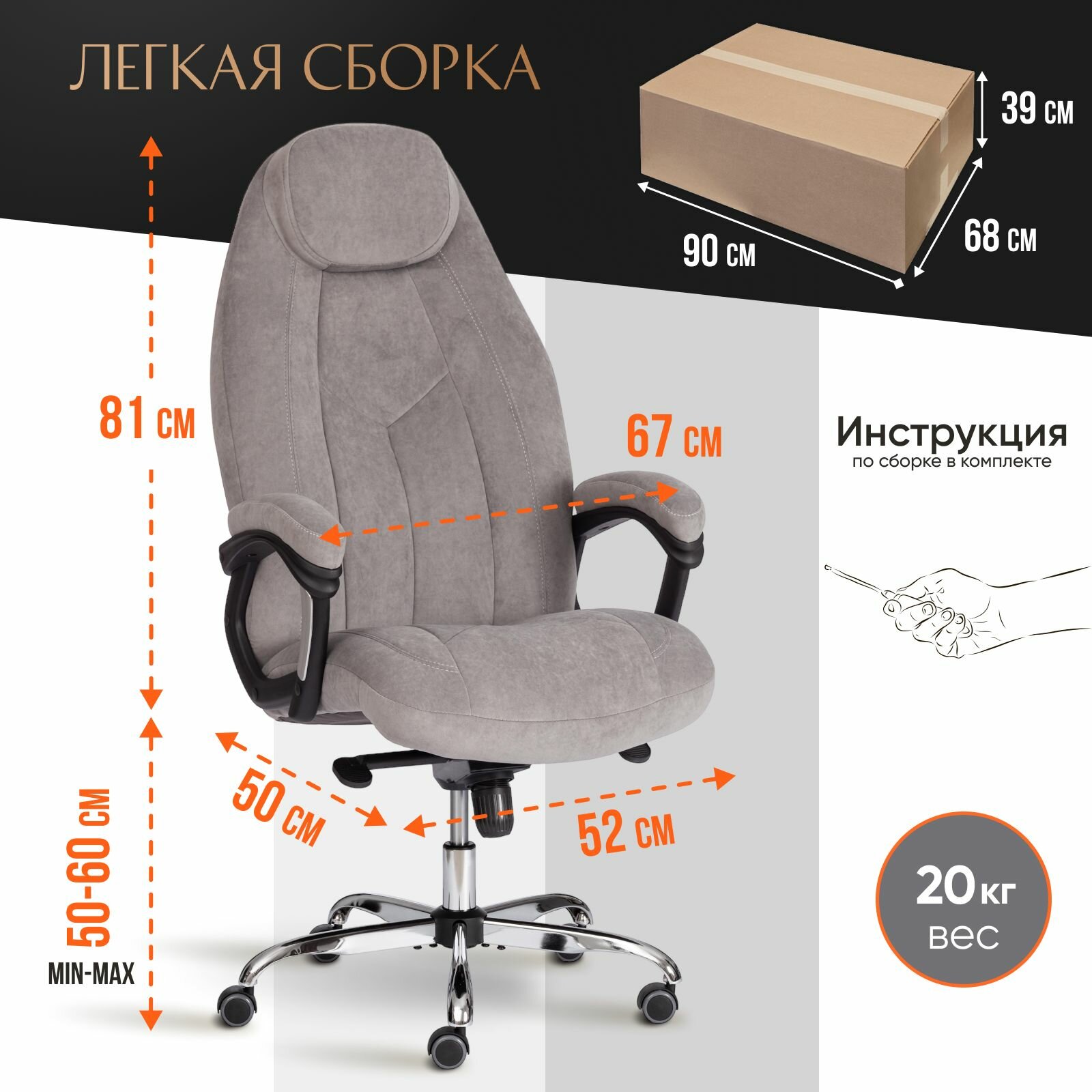 Купить Компьютерное кресло руководителя TetChair BOSS Lux, флок, серый