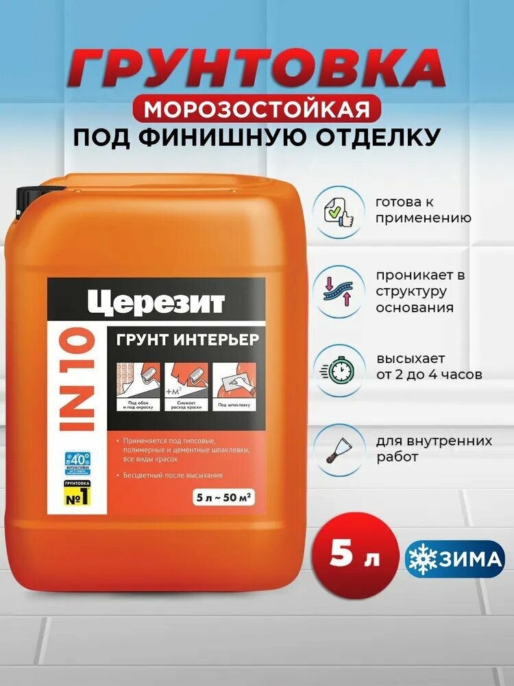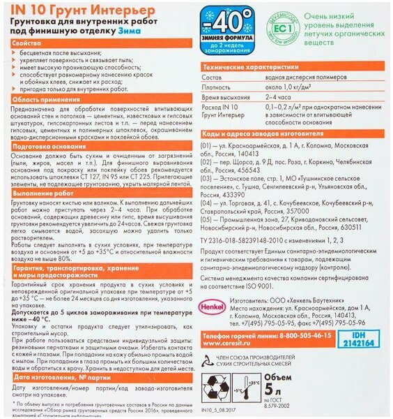 Ниже Вы можете прочитать отзывы на Грунтовка для внутренних работ Церезит IN 10 Грунт Интерьер, 5 л, ознакомится с подробными характеристиками, посмотреть интересные обзоры и фотографии на Грунтовка для внутренних работ Церезит IN 10 Грунт Интерьер, 5 л.