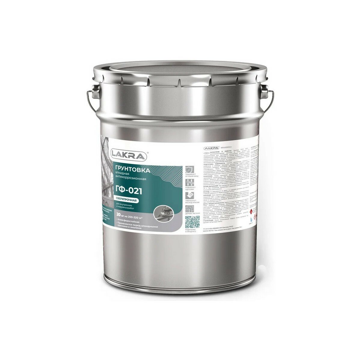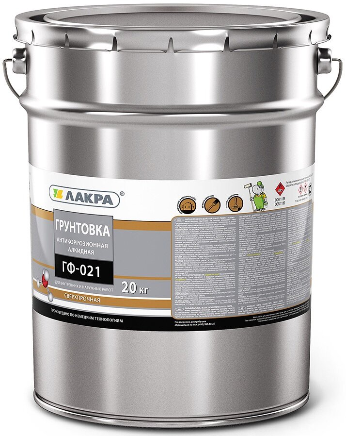 Грунтовка Лакра ГФ 021 антикоррозионная алкидная сверхпрочная 20 кг серая