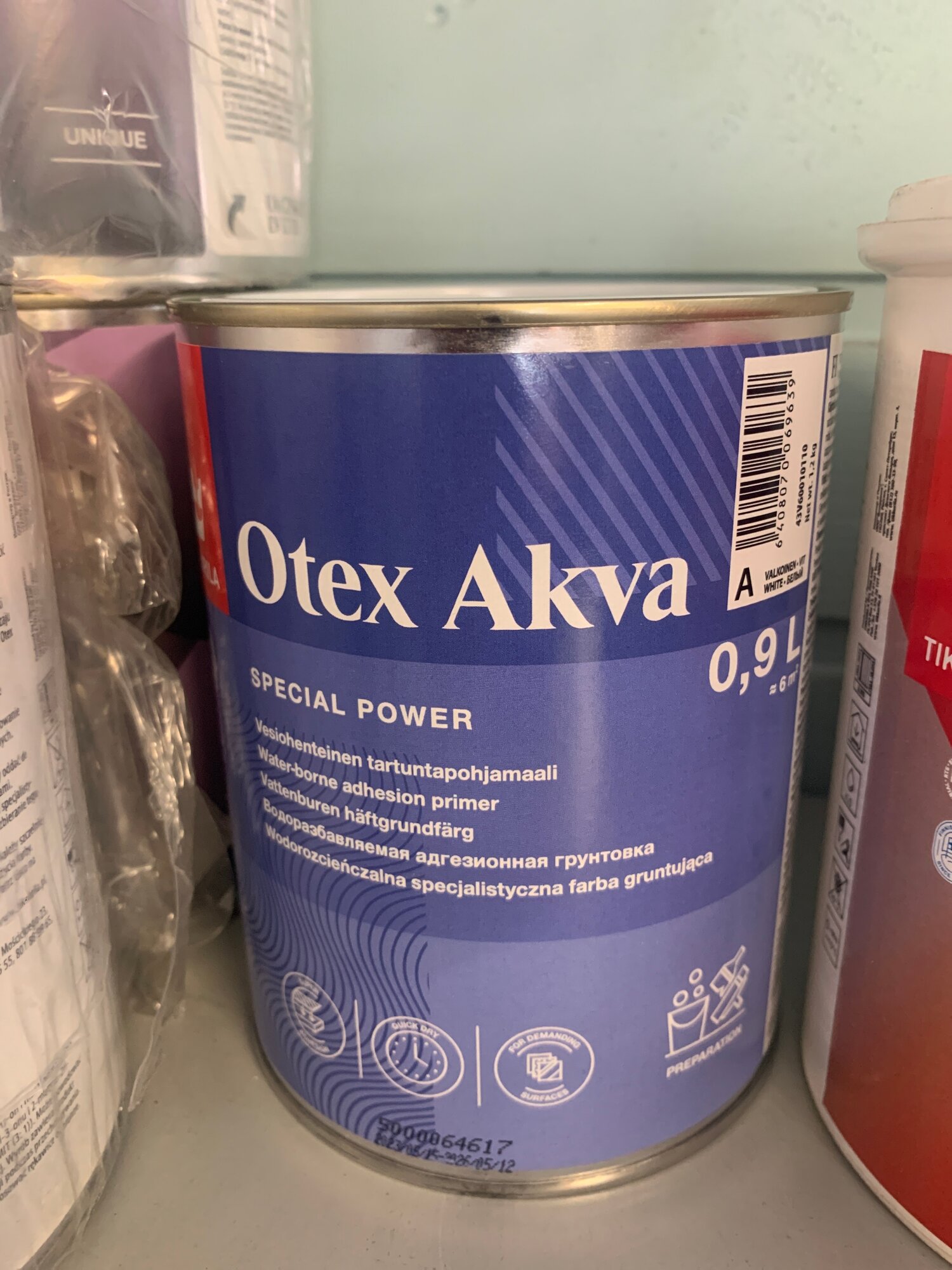 Tikkurila Otex Akva / Тиккурила Отекс Аква адгезионная грунтовка на водной основе 0.9 литра база "А белый