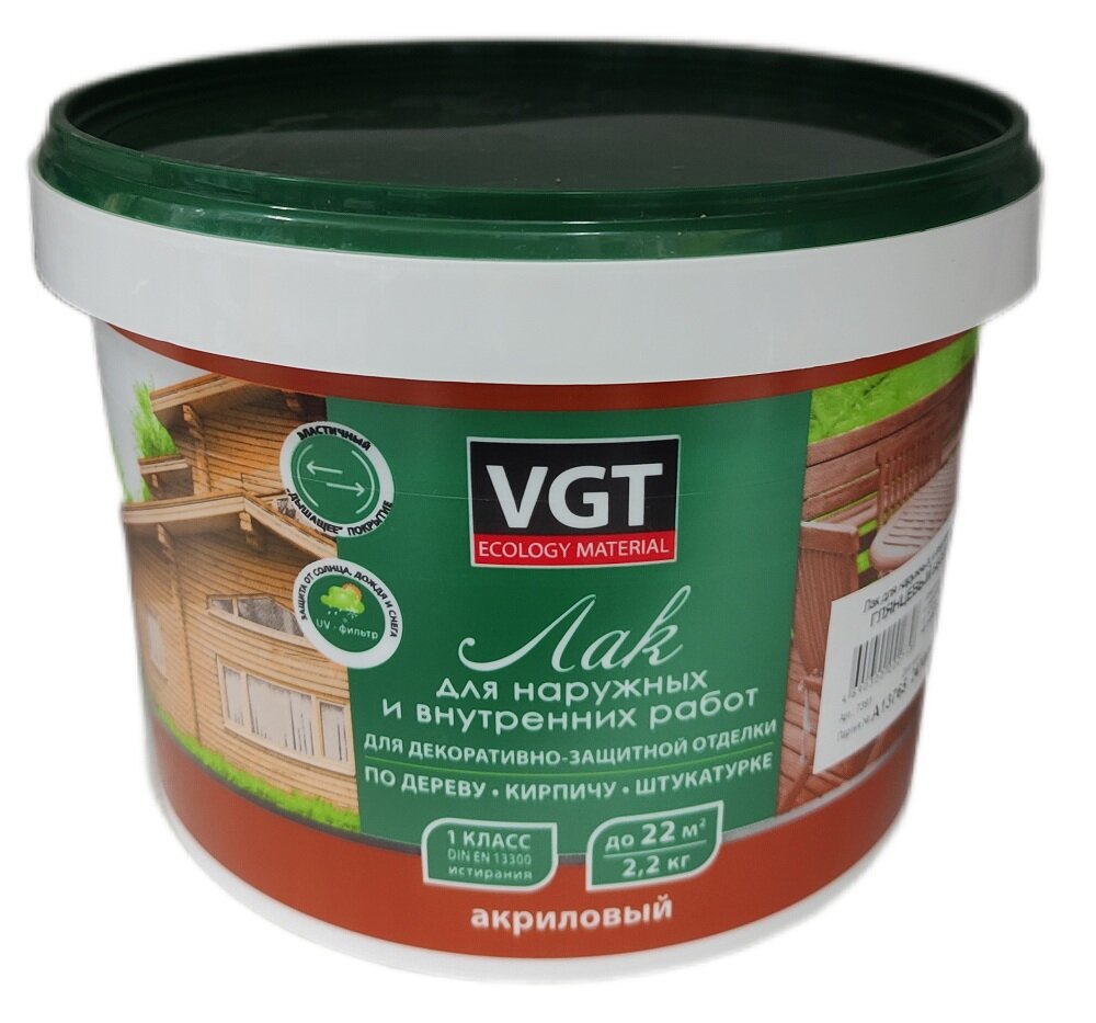 ВГТ лак акриловый для наружных и внутренних работ глянцевый (2,2кг) / VGT лак акриловый для наружных и внутренних работ по дереву кирпичу штукатурке г
