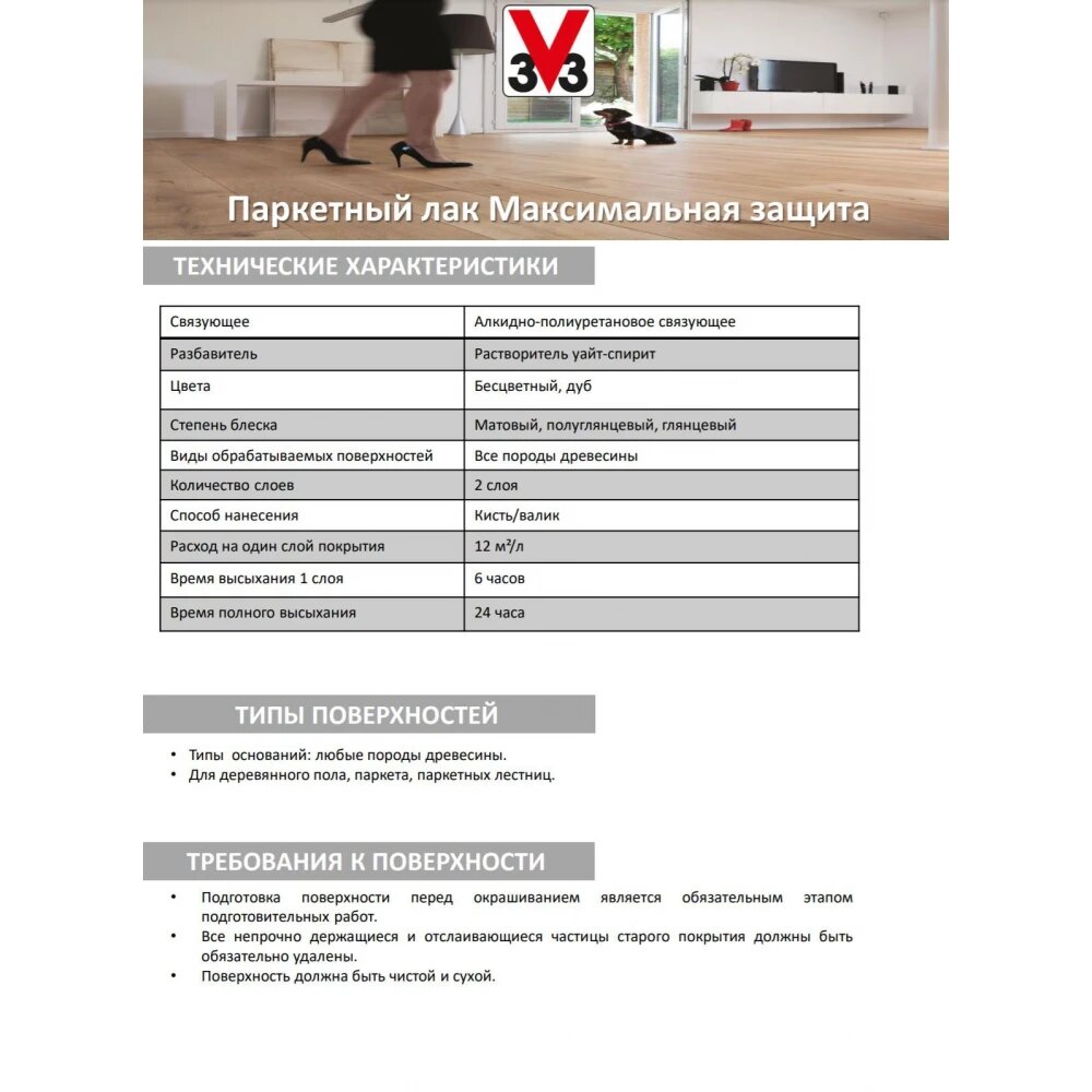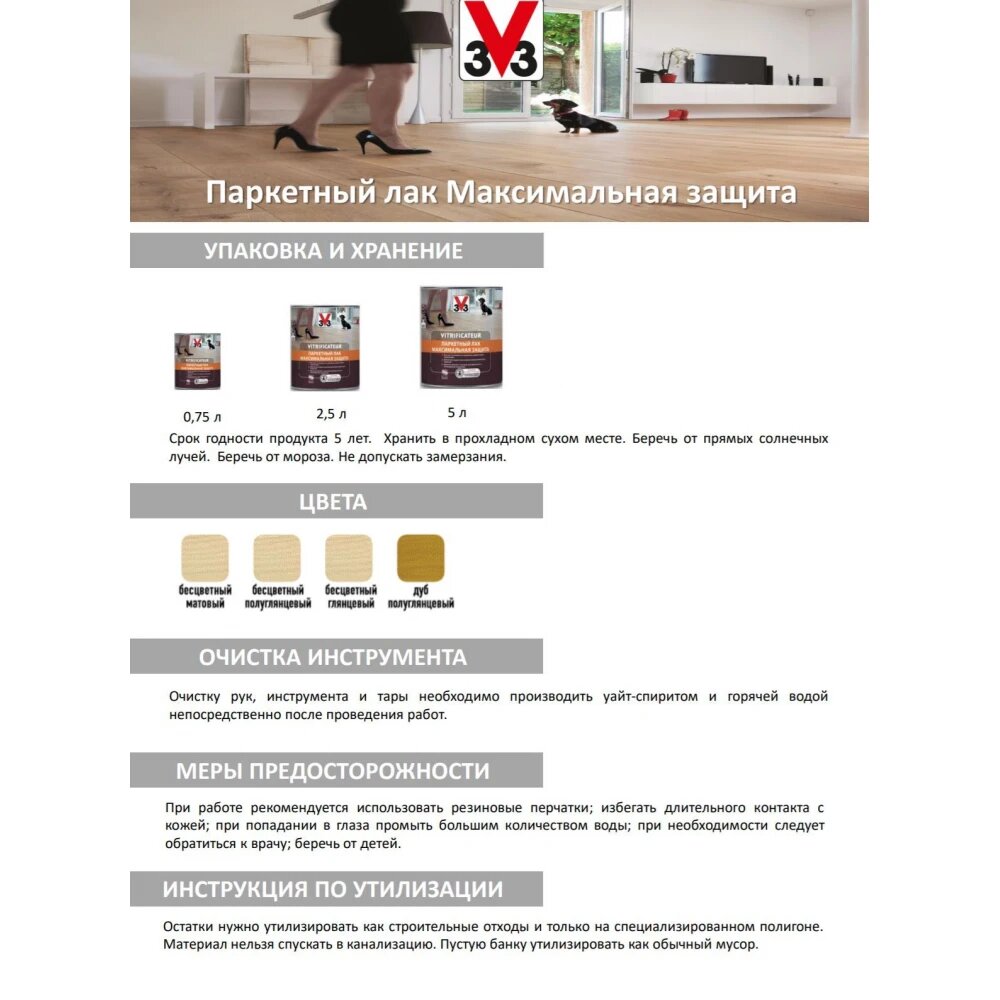 Лак V33 Паркетный Максимальная защита матовый 2,5л интересное: