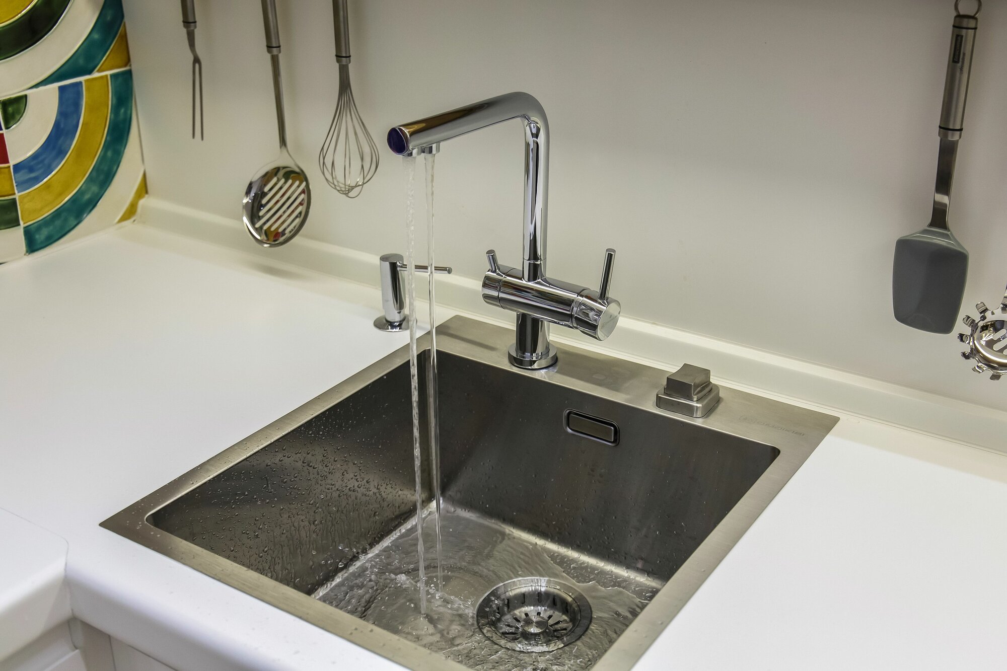 | Плюсы: | Идеально подходит под раковину, возможность совместить с краном фильтра |