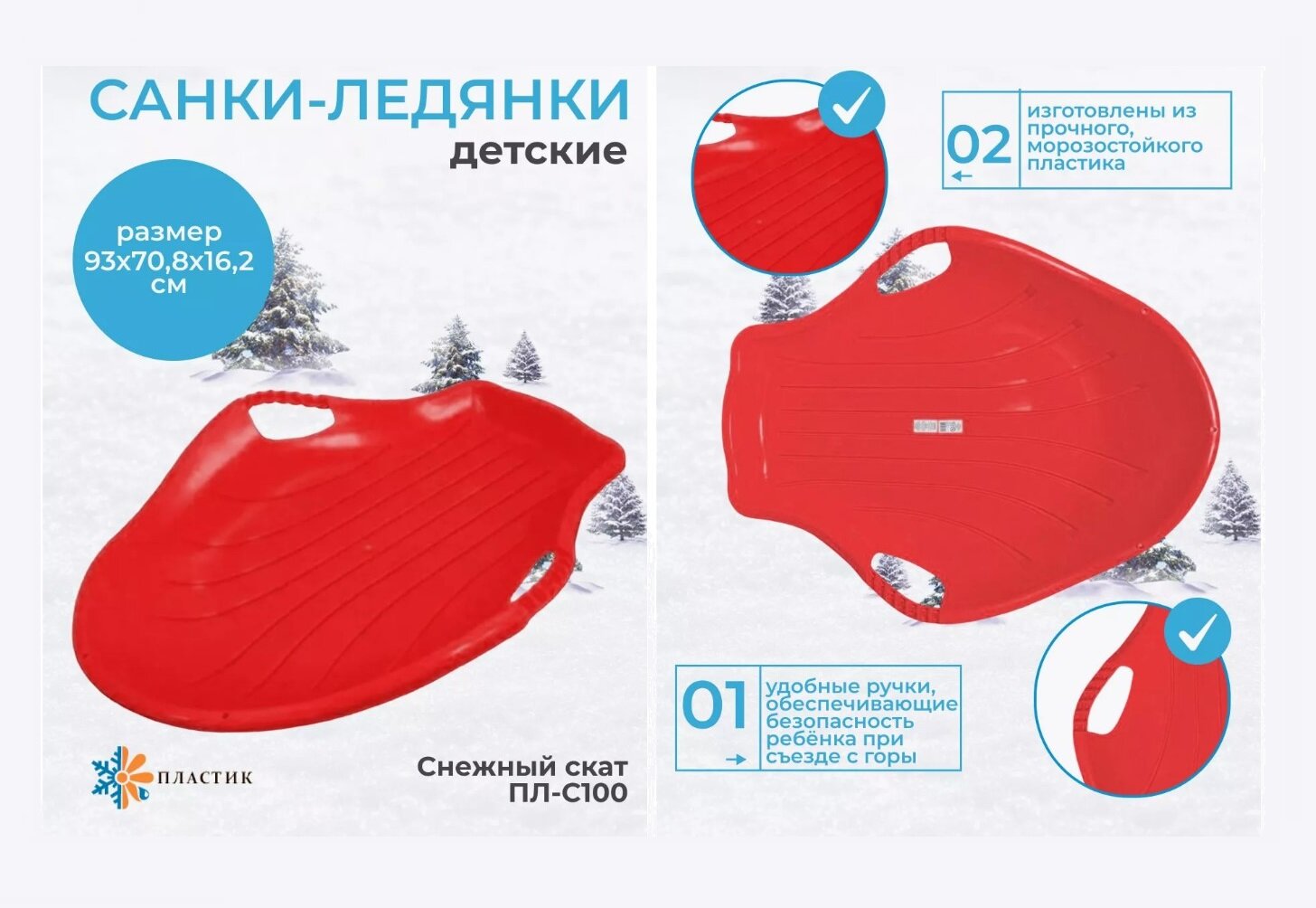 Санки-ледянки детские Пластик Снежный скат Пл-С100 красные