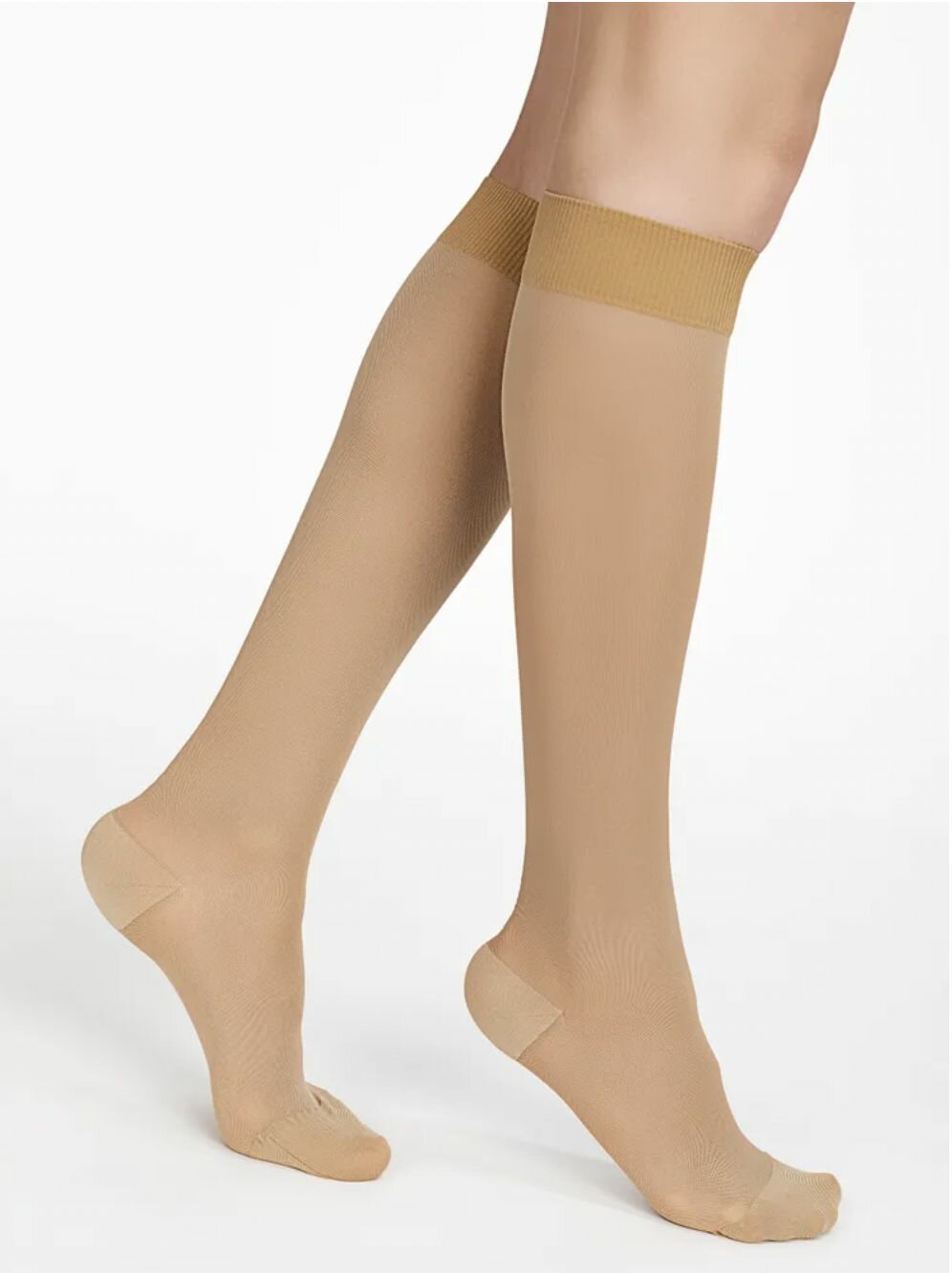 Компрессионные гольфы женские 1 класс (18-22 мм рт.ст.)/компрессионный трикотаж, цвет темно-бежевый, размер L