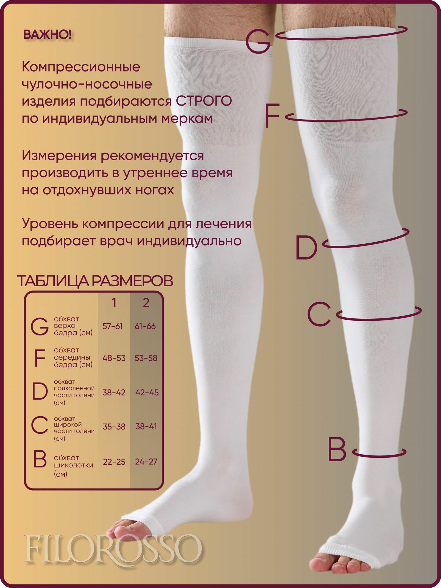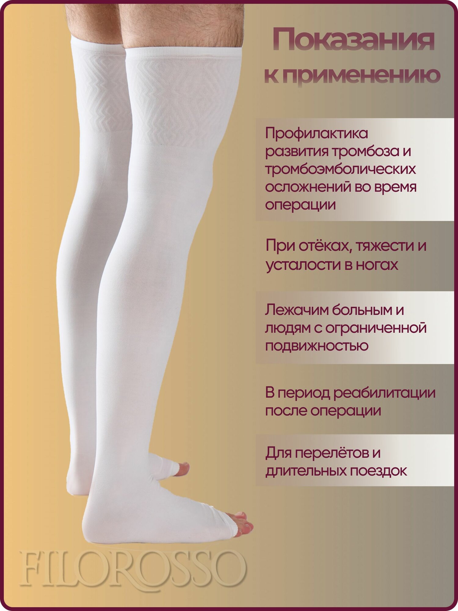 Чулки мужские Госпитальные "Filorosso", 1 класс, 50 den, размер 2, бежевые, компрессионные лечебно-профилактические 6014