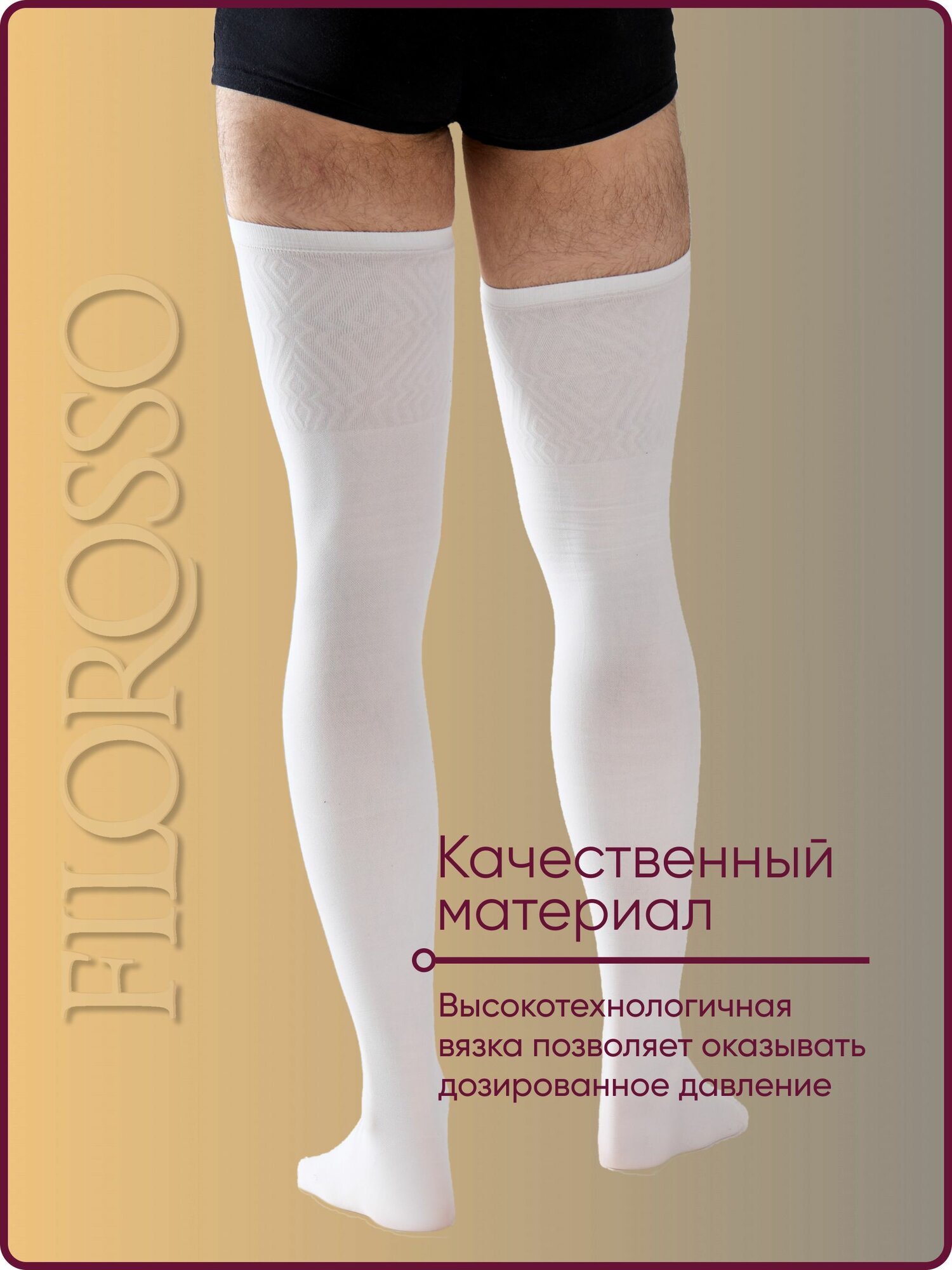 Чулки мужские Госпитальные "Filorosso", 1 класс, 50 den, размер 2, белые, компрессионные лечебно-профилактические 6007