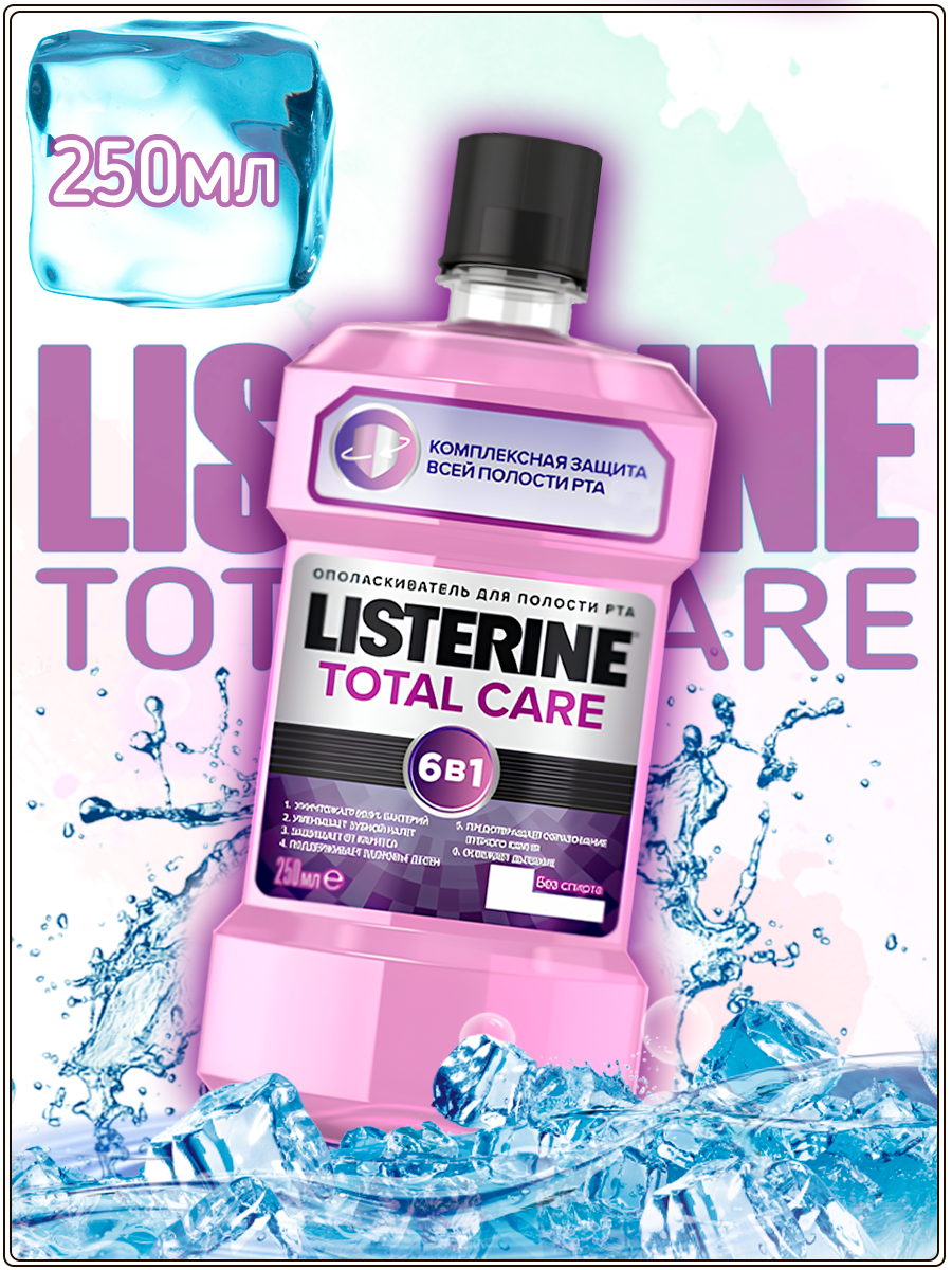Listerine, Total Care, без спирта, 250 мл. Ополаскиватель для рта.