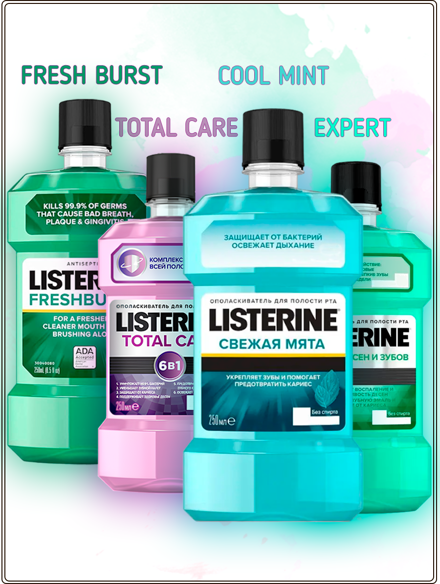 | Отзыв: | Есть несколько других ополаскивателей в линейке Листерин, советую чередовать их, чтобы не приелся вкус. |