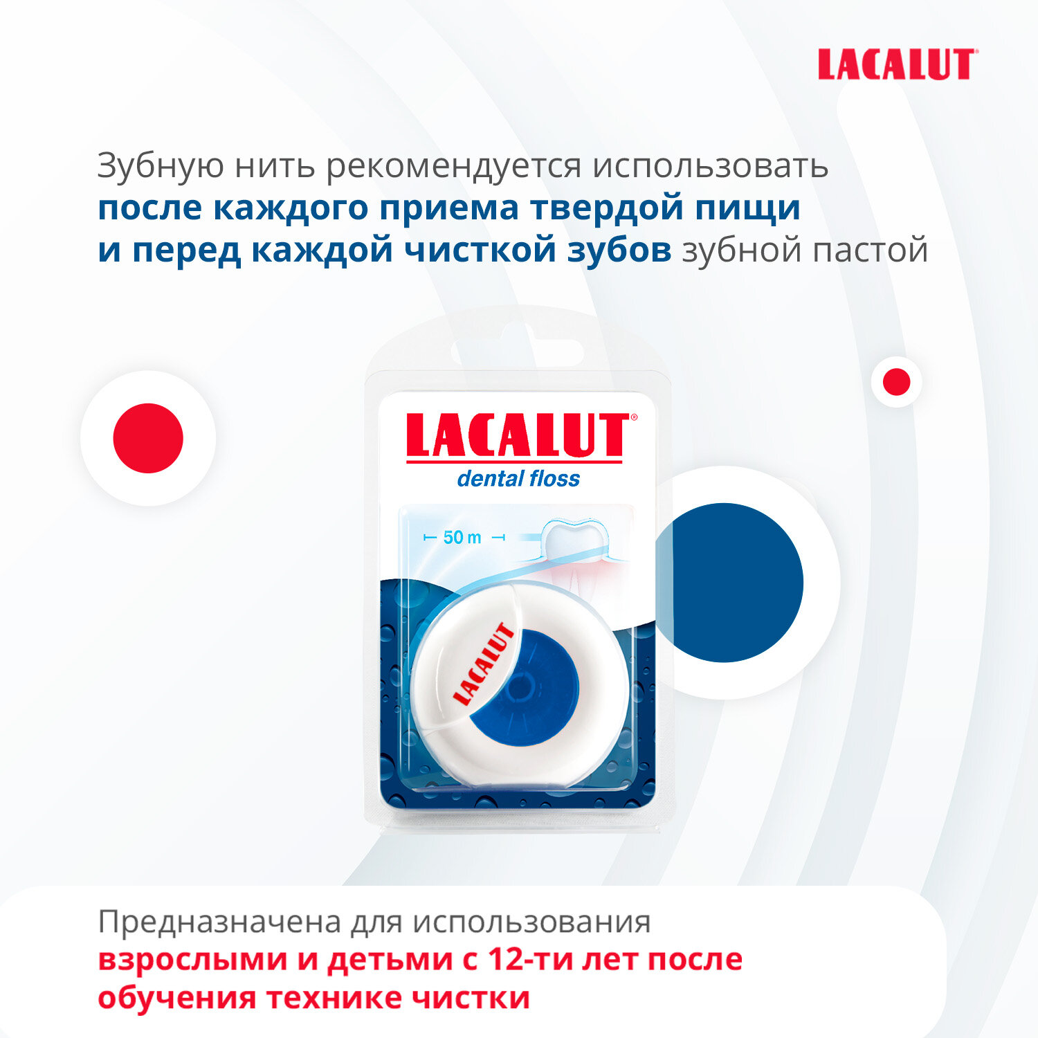 Зубная нить Lacalut Dental с мятным вкусом, 50 метров, красная